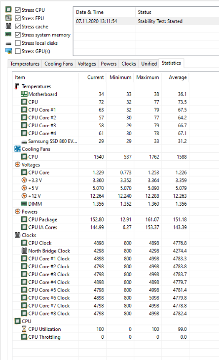 Протестировал свою новую сборку в течение трех часов. Никаких выключений и лагов не заметил. Это нормальные температуры для этой системы ?