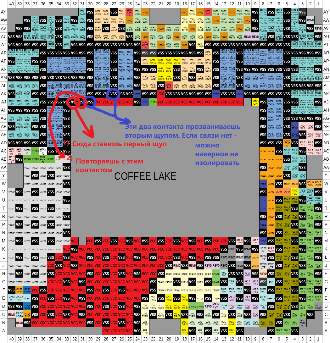 Желтым цветом обозначены контакты, которые также имеют различное назначение в сокетах 1151v1 и 1151v2, но пока не найдено плат, для которых нужна их обязательная изоляция.