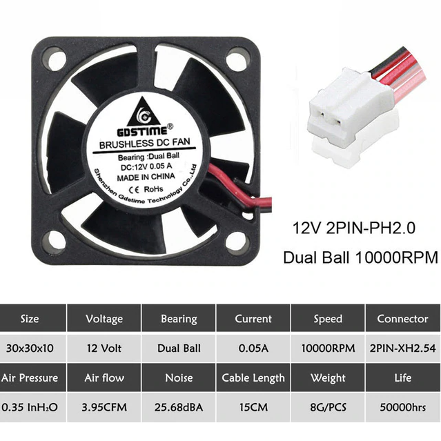Если будете заказывать на XH2.54 то нужно от родных переставить разъемы питания. А если закажете на PH2.0 , то в разъемах надо будет красный и черный провода менять местами, у вентиляторов по ссылкам полярность в разъеме не такая, как используется на TF-ке. То есть какой вентилятор не бери, с разъемами поиграть придется.