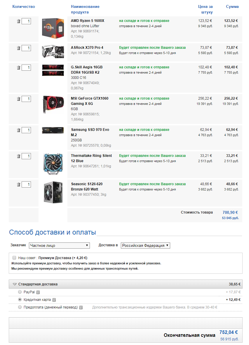 ну и коль вам нужен целый пк. берите видяху, ссд и бп там же. 5к отобьется и в сумме с доставкой те же деньги выходят