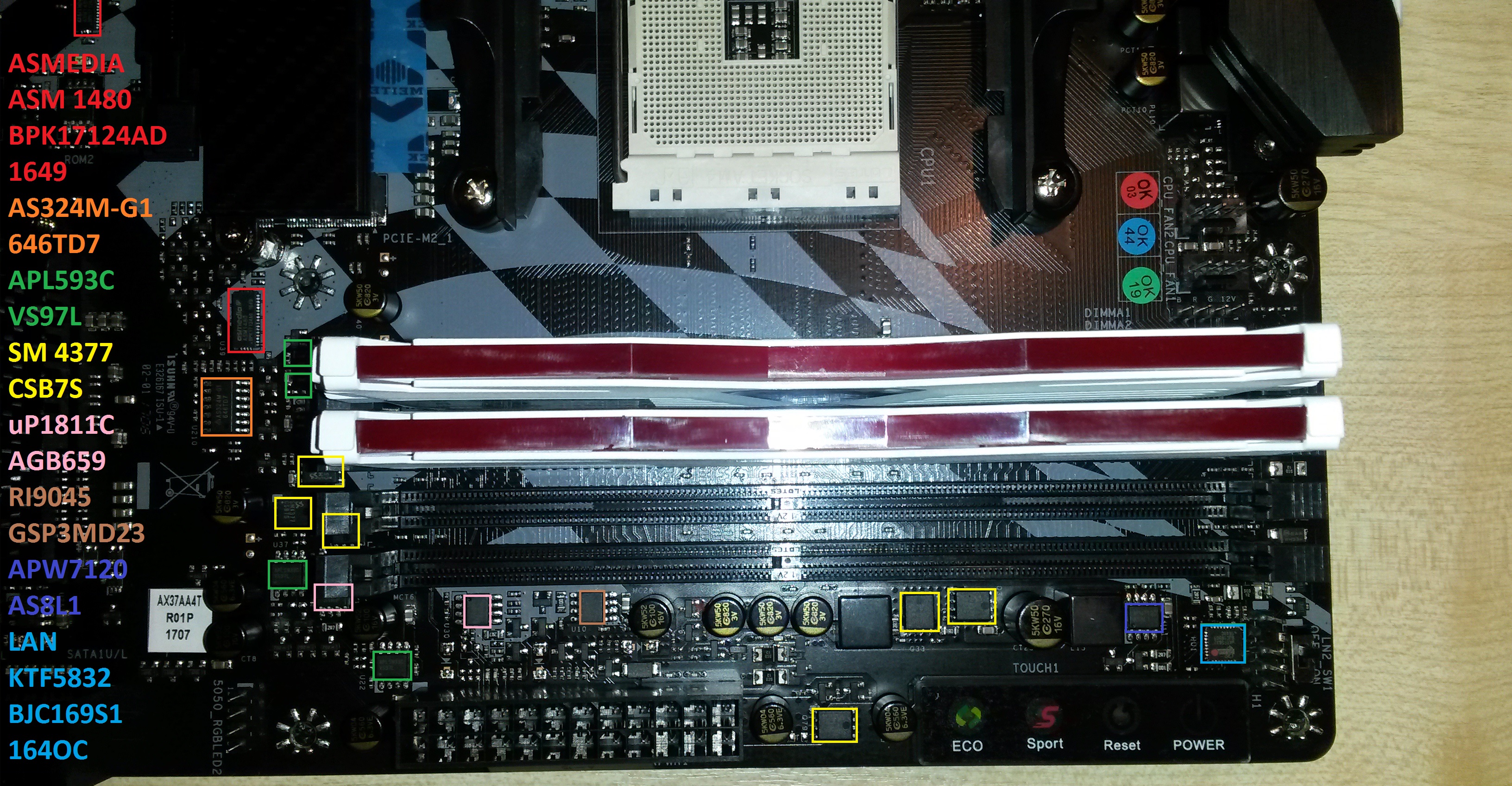6 ШТУК ВОКРУГ: SM 4377 CSB7S ОДНА ВОЗЛЕ LN2 LAN KTF5832 BJC169S1 164OC СЛЕДОМ: APW7120 AS8L1 SLEDOM: RI9045 GSP3MD23 SLEDOM 2: uP1811C AGB659 SLEDOM 4: APL593C VS97L SLEDOM AS324M-G1 646TD7 SLEDOM ASMEDIA 5X: ASM 1480 BPK17124AD 1649