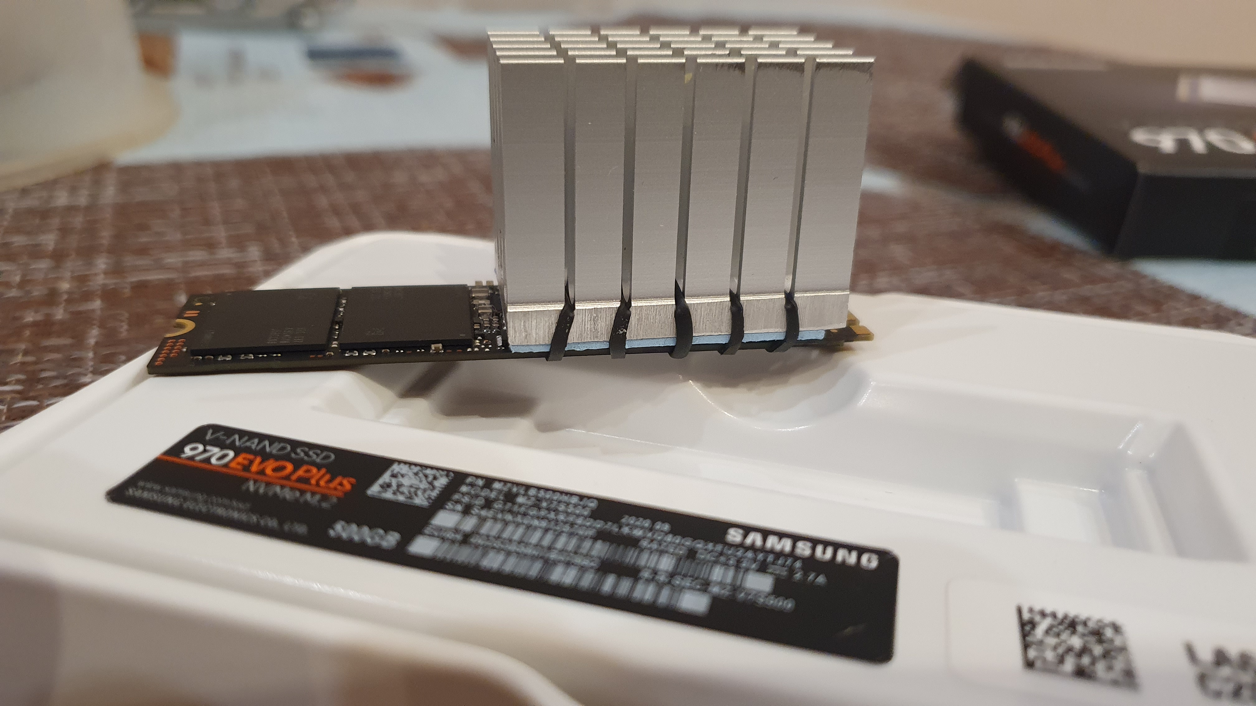 Имеешь в виду, температур? Я сразу всё сделал, вставил и забыл. Да и особого смысла без радиатора его тестировать не было (полно в сети тестов на эту модель, там везде на тестах до 70 и выше доходит). Поставить на диск нормальный радиатор (как раз смотрел тот, что из поста выше) - не вариант, т.к. он по высоте из-за платы расширения не подойдет. Поэтому действовал по принципу "делай, что сможешь, и будь как будет". В моей ситуации большего не сделать. Понаблюдаю за температурами по ходу использования. На Gaming Plus вообще нет удачного места для горячего SSD: сверху его будет греть видеокарта и процессор, снизу - приходится выбирать либо плата расширения x1, либо радиатор на SSD. Сдвинули бы разъем М2_2 на 2-3 см назад, и было бы идеально (любой радиатор бы влез)