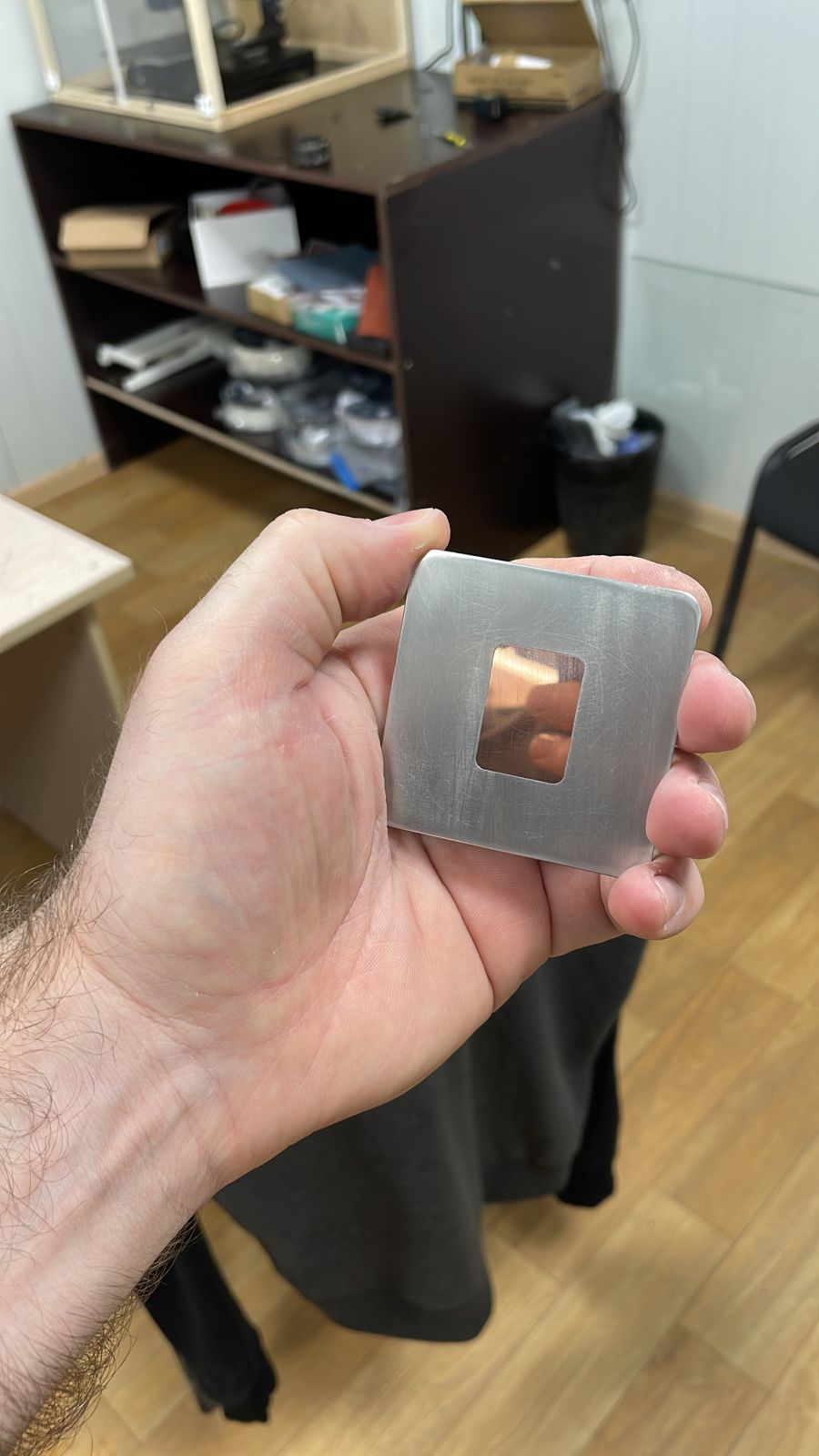 Добавлено спустя 16 минут 16 секунд: П.С. по поводу доработки пластины - по мимо того что я шлифанул медную пластину до основания алюминия и наполировал до зеркального блеска с обеих сторон, я заметил что в базовом варианте сам блок прилегает не плотно к кристаллу процессора и граням так сказать металлического корытца этого процессора. Ножки блока тепло распределительной крышки создают эту проблему. Выявил это очень просто установив стекло на место этой крыши и поняв что кристалл процессора и металлические края в идеальном ровном горизонте относительно друг друга. Стачив немного по высоте утолщения основания на каждой ноге, получилось добиться идеального прилегания блока к кристаллу процессора. Потом нанес ЖМ вместо термопасты / отдельное благодарность vve за предупреждения выше, прежде чем наносить ЖМ попробовал выдавить его на кусок стекла .... и конечно все это добротно так плюнуло ... плате был бы кирдык 100%. После этого всасал в шприц то что было возможно и уже аккуратно нанес на процессор и термораспределительную крышку в зоне меди. Признаюсь все равно кажется что металла много было ... хотя я его максимально откачал шприцом после нанесения... будем надеется что замкнутый контур тут сыграет нам на руку. Алюминиевая часть радиатора по любому где то по мелочи пострадает =)