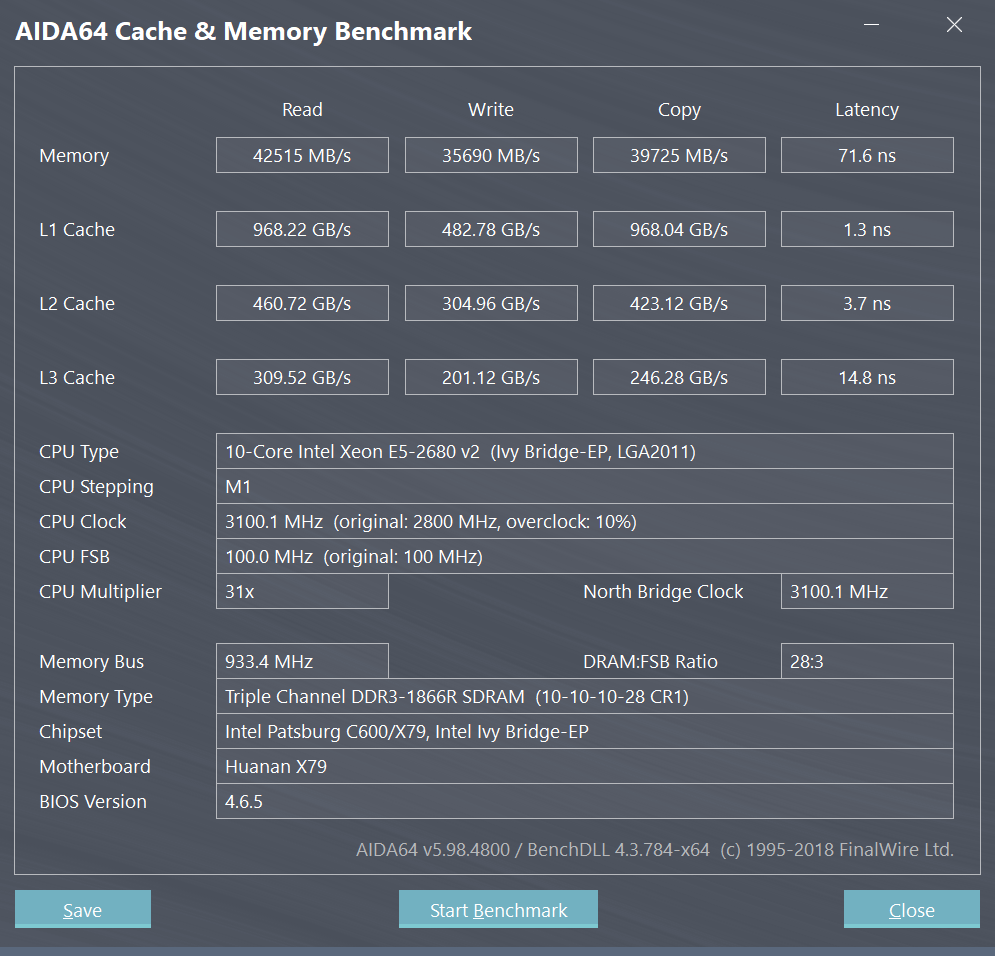 на прошивке от хуанши,память проседала вот так (42200,35000,39700) с таймингами игрался,но не сильно,так как сейчас работает в трехканале.жду четвертую планку. На биосе,где работает 1866 и нет зависонов на загрузке, память проседает вот так(42200,25000,35000) Куда копать дальше? На автомате память заводится на 12-12-12-32 и trfc 230. Выставил тайминги 10-10-10-28 и trfc 180 все пашет,но память на запись без изменений Может шаверма из сасунга и кингстона не хочет заводится )))) близко к нормальным(41200,37000,39700) были такие ттайминги 1866MHz 10 10 10 28 11 10 170 7 5 7 26 38