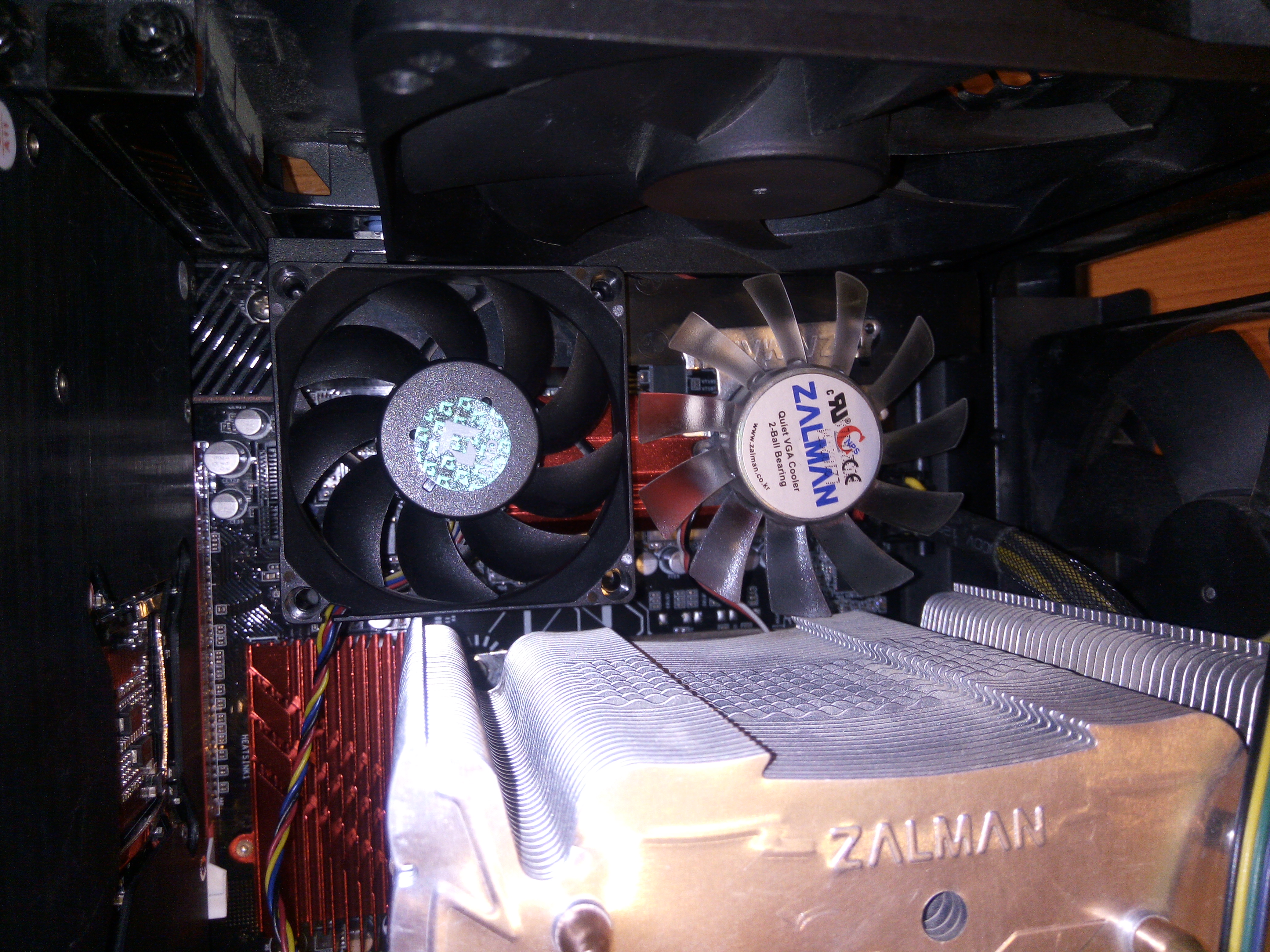 Пойдет?))) Додумал все же как поставить) На обдув же стоят? Правда они не в упор к радиаторам, а на возвышенности, так как там пластиковая панелька, с помощью которой мне и получилось их приделать) Ух как же шумно сразу стало( А обязательно еще и на северный мост и обратную сторону материнки ставить вентиль? И температуру цепей и мостов программно не определить?