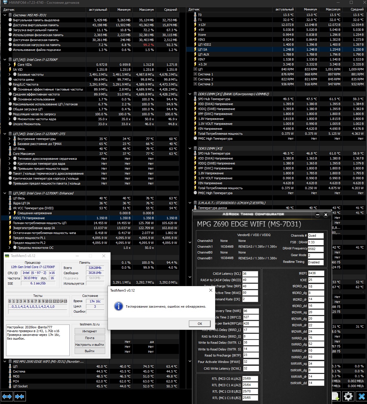 Вечер добрый! А какие напряжения в MSI принято считать безопасными? Конкретно интересуют: VDD2 VDDQ TX Еще интересна допустимая температура чипсета, а то 72 градуса как-то много, учитывая одну видеокарту и один ссд пси-е 3. Заранее благодарен.