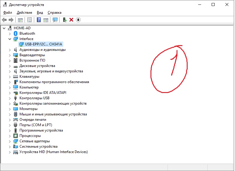 При подключении к компьютеру с установленным драйвером, программатор должен определяться в диспетчере задач так: