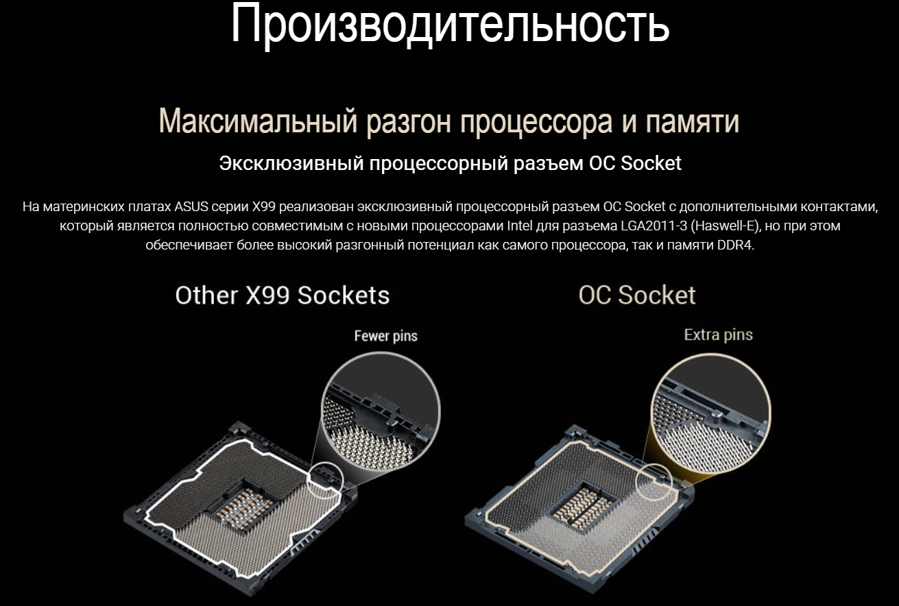 На сайте производителя заявлено, что вся их продукция с чипсетом x99 оснащена OC Socket`ами. На коробке от платы ни одной надписи по этому поводу нет, в мануале так же ничего. Остаётся только верить. Но разгон кэша плата осуществляет без проблем.