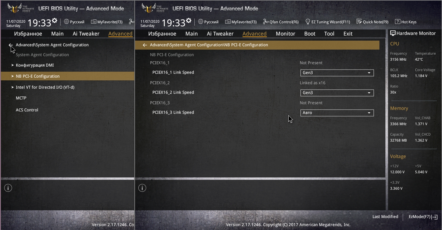 Внимание: НЕ ВКЛЮЧАЙТЕ РЕЖИМ XMP на процессорах Broadwell-E! Это может привести к выходу процессора из строя. Когда разгоняете память, смотрите на параметры напряжений VCCIO и System Agent. Они не должны быть жёлтыми.