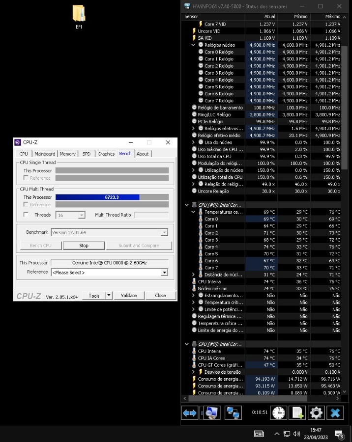 Я использовал жидкий металл и это был результат. До применения жидкого металла было возможно только рассеивать 100-105 Вт с прямым контактом кулера на DIE. Теперь можно рассеивать 140 Вт до возникновения термической деградации.