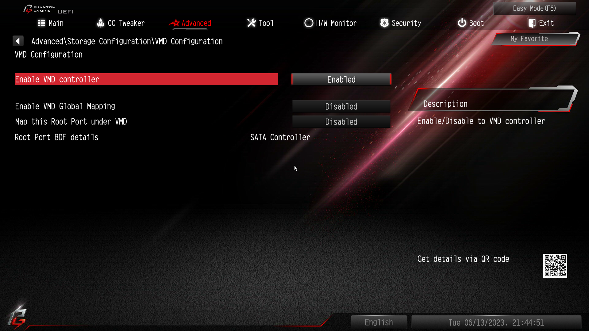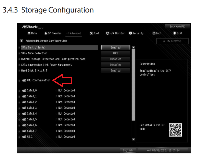 Заходил в конфигурацию VMD, включал контроллер и потом появлялись ещё две строки (одна для М2 и другая для SATA, включал для SATA). Диски в БИОСе виделись как до этого так и после, никаких рэйд масивов не создавал и с дисками вообще ничего не делал больше.