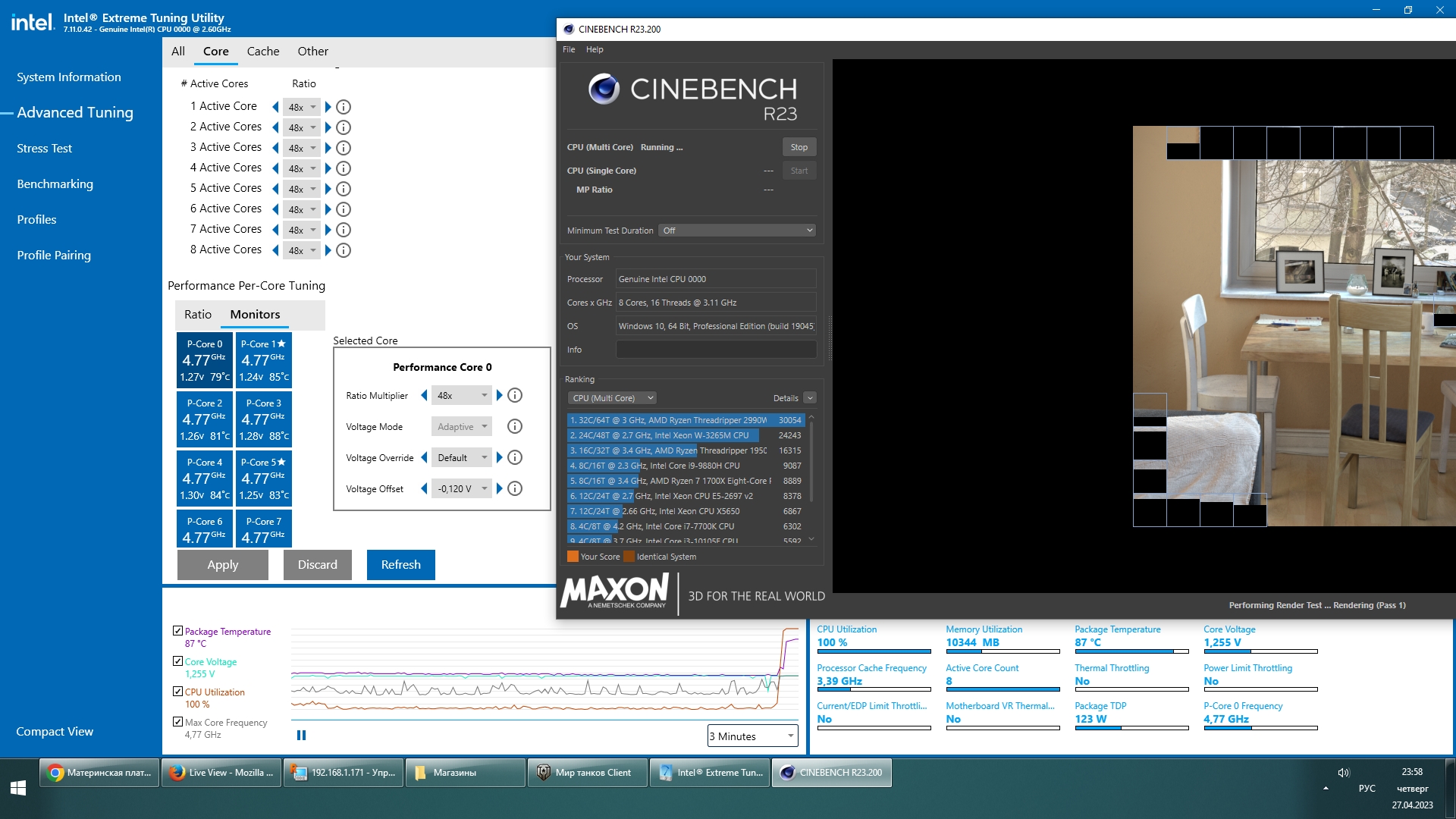Мутант 2.2 - 11800h который китаец называет, неплохо поехал. Гризли метал + ID-COOLING SE-206-XT #77 Лимиты сняты везде, но почему то вольтажа не добавить, температуры детские. Плата тротлит по току именно.