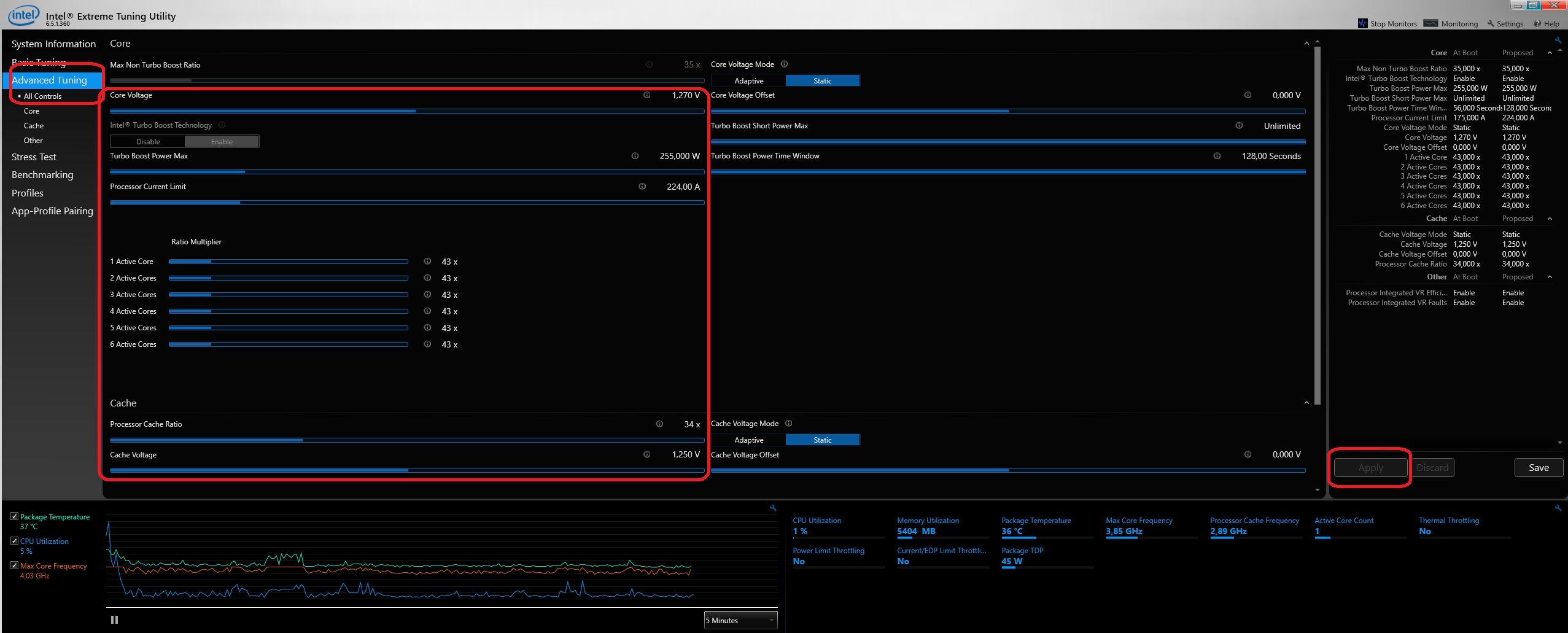 Для 26xx это врятли поможет так как и из под IntelXTU повышение не работает, а вот для 1650/60 будет актуально. Надо всего лишь сделать пункты Cpu-Advanced PM Tuning и Program PP0_CURT_CFG_CTRL_MSR видимыми переключив на USER. Потом зайти в биос и переключить Current Config в режим Enable. Выставть лимит, допустим надо 200А - выставляем 1600, тоесть требуемый ток умножаем на 8 и вбиваем число.