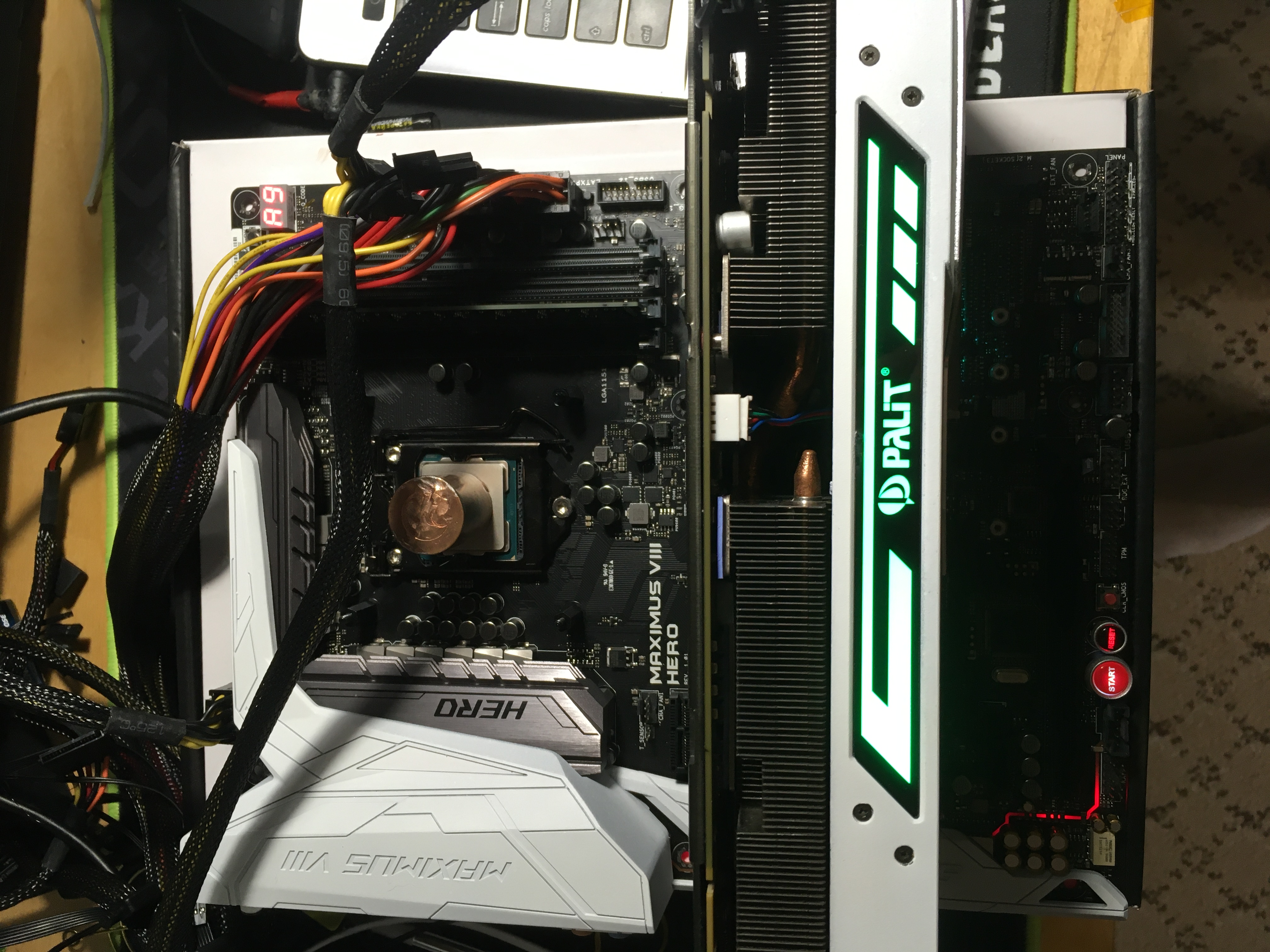 Имеется процессор i5 6400 и мат.плата ASUS Maximus VIII Hero, поставил i9 9900k ревизии R0. Использовал мод.биос, сделанный в CoffeeTime 0.85a, добавлял микрокод D2 для 906ED в advanced mode. Изолировал с помощью каптона, замыкал на процессоре перемычку для запуска https://i.imgur.com/MWLpLm0.jpg Прошивал с помощью программатора CH341A, используя AsProgrammer 1.4.0, сверку прошло при прошивке.