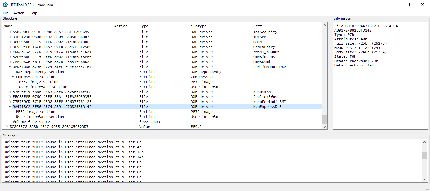 1) В послденее время опять участились жалобы на наличии вируса в пакете UBU, якобы МСЕ,ехе содержит вирус. Поэтому принято решение, что вместо ехе файла теперь будет py исхотдный Пайтона. Чтобы была корректная работа с микодами вам необходимо установить пакет Ptyhon версии 3.7 или выше. А также две библиотеки: - colorama - PLTable Как это сделать уаказано на ГитХабе в репе МСЕ. Вы можете юзать м ехе файл, но скачивать его будете самостоятельно. Если установите Пайтон то у вас появится возможность юзать другие приложения на Пайтон, которых очень много. 2) Все архивы с файлами теперь здесь https://mega.nz/#F!MSRDxSqR!5etS-te7ZqRQX9Zb25es_A 3) На данный момент рекомендуется использовать UEFITool v0.25.0 (и не выше), до выяснения