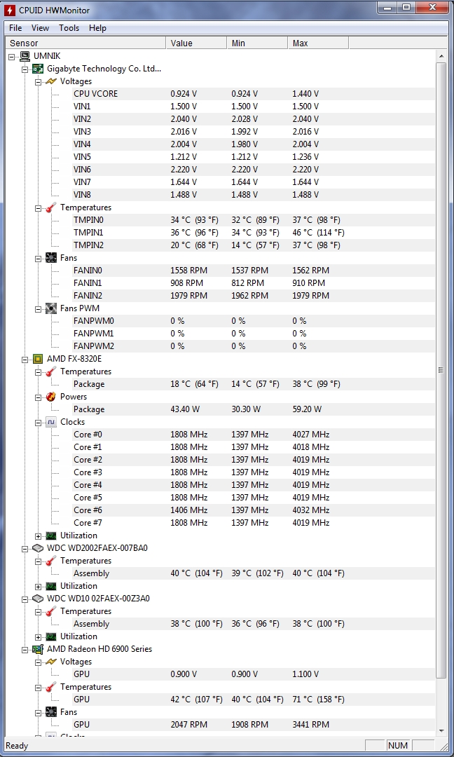 Приветствую купил gigabyte 970a ud3p rev 2.1 + fx 8320e(сток). Проц непривычно холодный, или это cpuid занижает температуру? С датчиками матери, тоже не всё понятно. На какую из 3х температур ориентироваться?