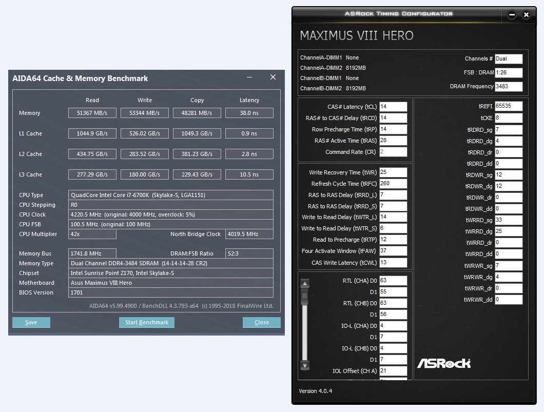 Напомню, целью было выяснить почему профильная память не разгонялась больше 3333MHz ни в какую, конечно грешил и на материнку и на КП процессора и в какой то мере на то, что возможно "свежий" B-die - никакой. Хорошо что виновата оказалась одна материнка. Все тесты проводились без тестов стабильности и подборов таймингов, просто выставлялись первичные тайминги и частота (и то на это ушло несколько часов), дальше предстоит выяснить оптимальное соотношение частоты, таймингов и напряжений.