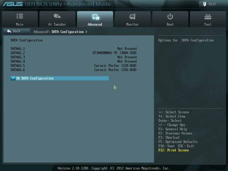 Здравствуйте, помогите разобраться с настройками sata на плате ASUS SABERTOOTH 990FX R2.0. в характеристиках написано, что у нее 6 портов сата3 6G и они коричневого цвета. у меня в настройках биоса показывает не так. подписаны другим цветом и вместо 6 портов сата 6G четыре порта 3G. в какие только порты не пытался диски подключать скорость вроде как все равно не соответствует ssd. диски подключены кабелями sata которые шли в комплекте к плате. https://s8.hostingkartinok.com/uploads/ ... 0060f0.jpg https://s8.hostingkartinok.com/uploads/ ... 1b296e.jpghttps://s8.hostingkartinok.com/uploads/ ... 0aaea9.jpg извините я не понял как скрины к сообщению прикрепить.