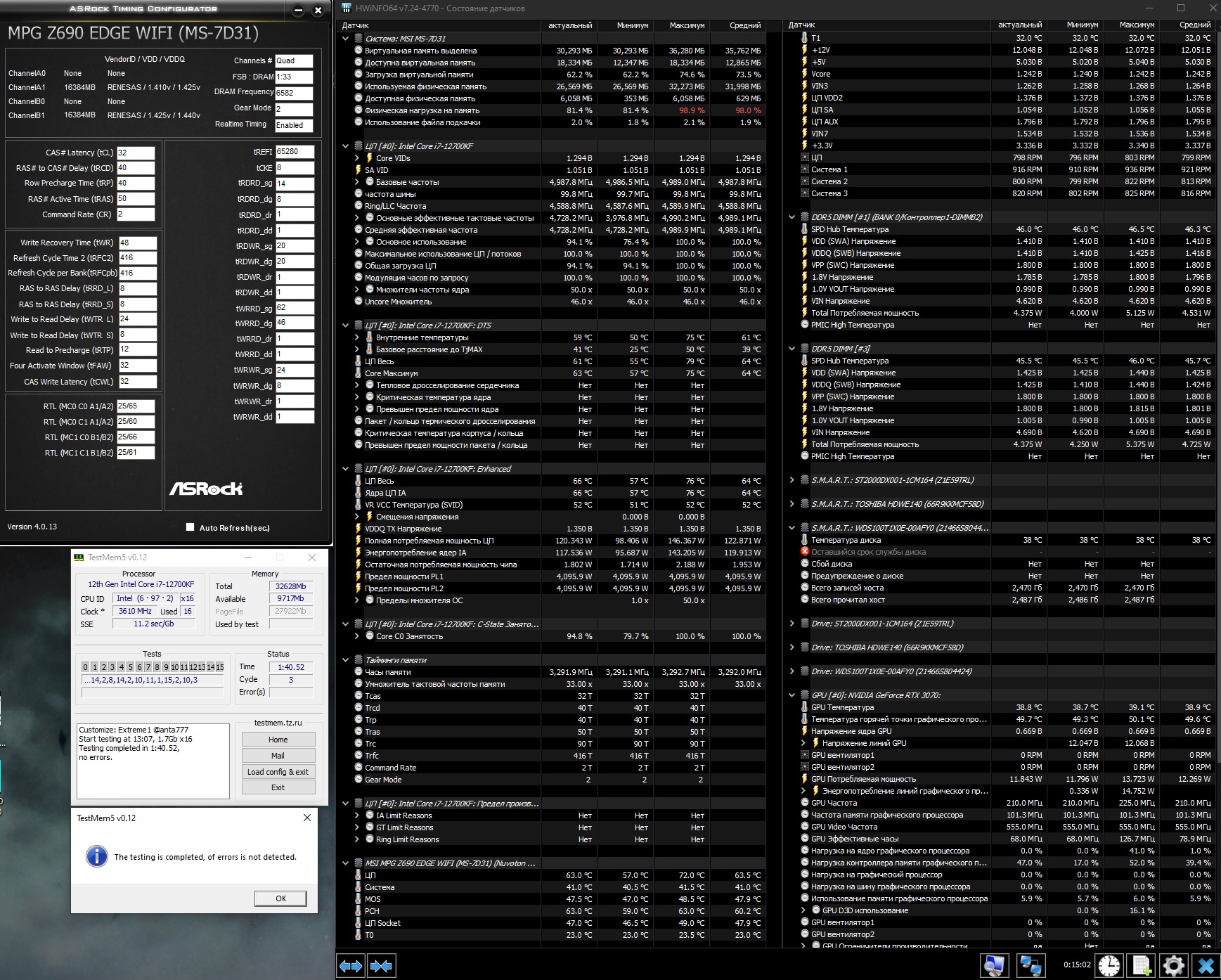 Siablo тут такое дело, что это два дня было стабильно, а сегодня через пару часов киберпука вылетело с ошибкой, я запустил тестмем и полетели ошибки. Перезагрузился и загрузил профиль стабильный в экстриме и все равно ошибки. Откатился обратно на 6400 На ддр4 такое было у меня, вылетала одиссея, но я вылечил это нстройкой trfc, а тут даже значения в авто не помогли - тоже сыпет На 6400 пока нормально. с ддр4 я еще 1-2 шага напруги накидывал, а тут уже не могу.