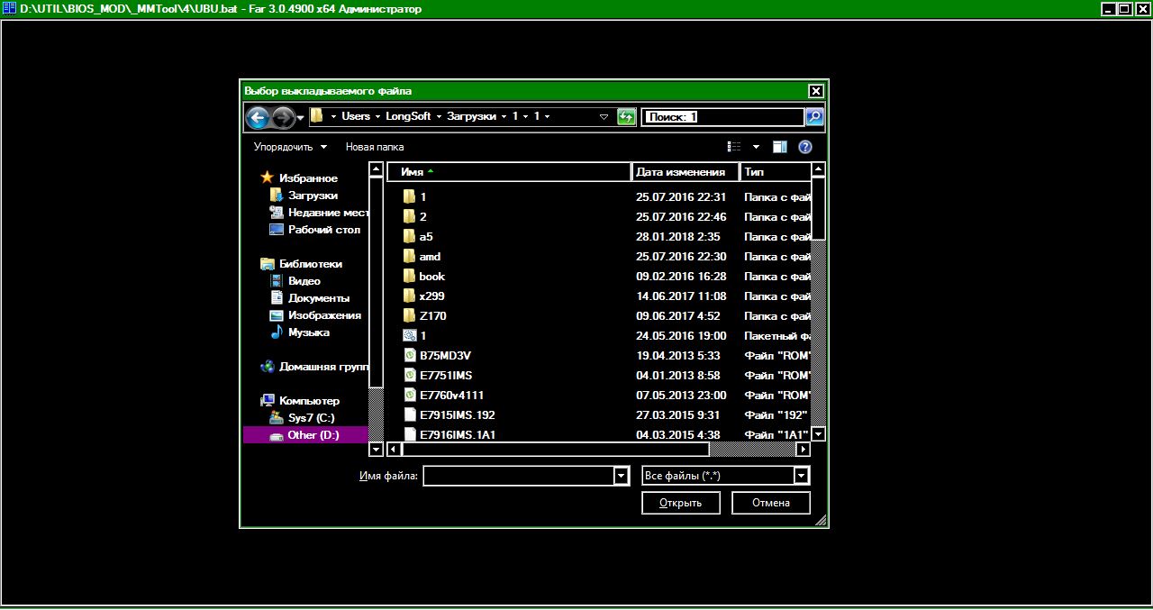 [1.75] Куча нововведений в папках Интел [1,72] MMTool К сожалению, невозможно предугадать какой муму отработает корректно. Поэтому используйте 2 разные версии мумутула - 5.0.0.7 как "mmtool_a4.exe" и 5.2.0.2x+ как "mmtool_a5.exe" Использование только одной версии не пригодно для многих бивисов на Aptio. [1.71] VROC Для обновления VROC with VMD требуется 2 файла, пример в папке Intel\VROC Штатные файлы RAID и sSATA укладываются, как обычно, в папку RSTe. MMTool Заложена поддержка 2-ух различных версий MMTool на перспективу. На данный момент используется одна версия, рекомендуется 5.0.0.7. Переименовать как "mmtool_a4.exe"