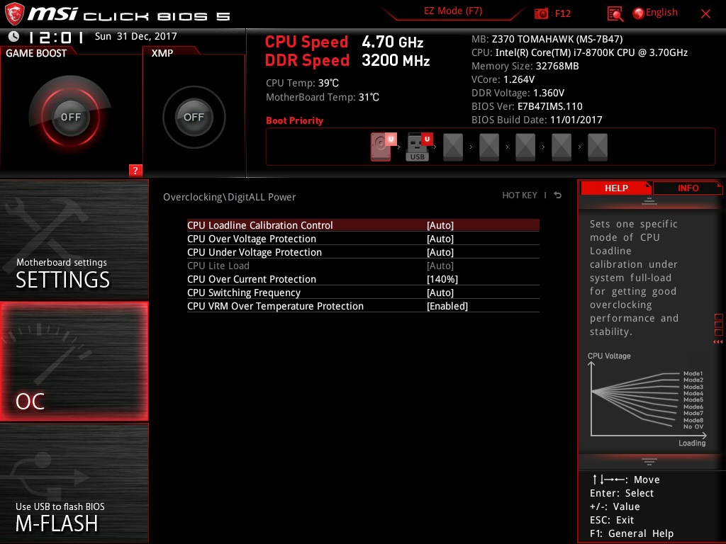 Что смущает меня больше всего, это конечно не стабильность температуры и эти постоянные ее скачки. По началу, я грешил на камень или на то что неправильно подобрал систему охлаждения, но почитав топики по матерям и процессору, понял что все-таки мать слишком задирает напряжение. Все это выполнялось при стандартных настройках BIOS. Был включен только XMP профиль для памяти. Если я правильно понимаю, то мне необходимо поменять настройки в BIOS CPU Core Voltage на меньше значение, от того что стоит по умолчанию, и наверное там 1.312(пишу пост с работы и в данный момент нету возможности глянуть).
