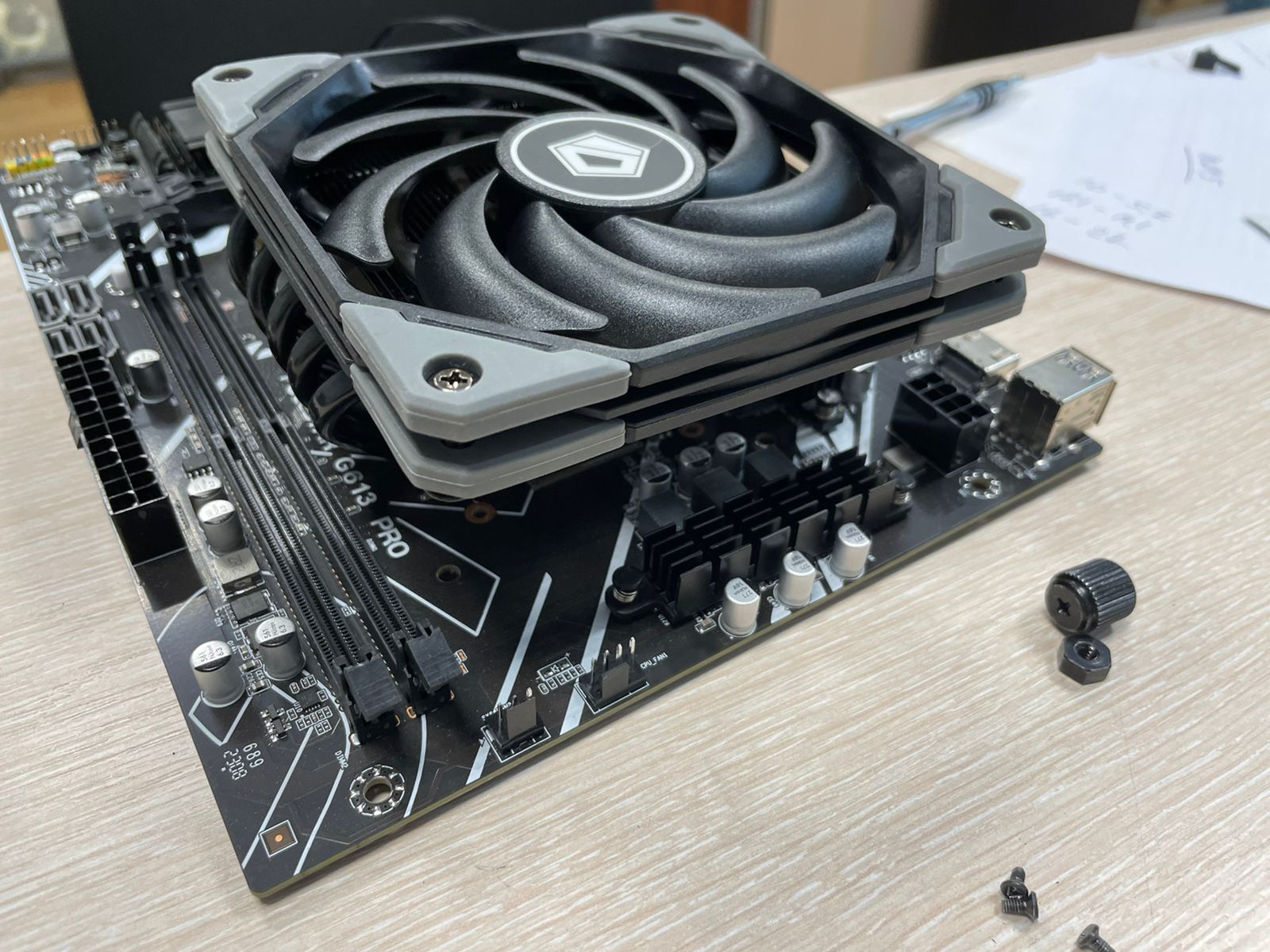 Прошло две недели, настала пара добавить ЖМ, т.к. поползли нормально температуры вверх. Вскрыл, чутка ЖМ попала на алюминий и сожрало его секунд за 30 =)))) в общем буду колхозить установку куллера прямо на скальпированный проц. Нашел интересный вариант охлада у нас в магазинах idcooling is50x, ставиться на мать и ничего не задевает, бонусом вынос перекрывает 2 ВРМ зоны. Надо колхозить крепление, первые попытки не очень =)