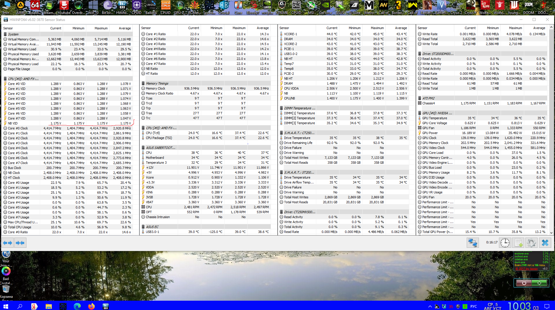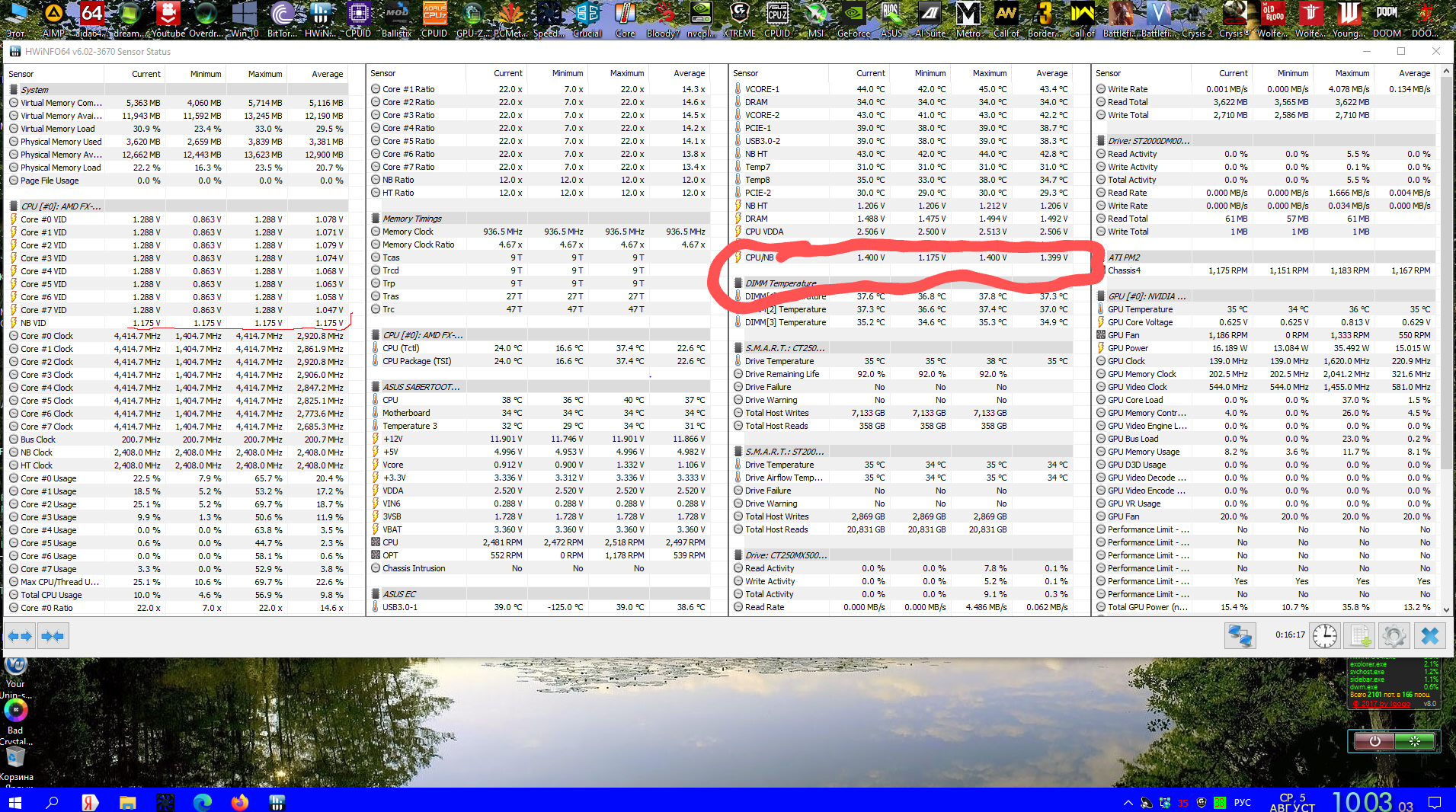 Процессор -то понятно. 4500 категорически не хочет работать. Но у меня память даже 2000 не работает. Причём с новья было всё то же самое. Я тогда потыркался и вернулся к 1866 с профилем из XMP. Вот пока максимум на что моя система способна: Итого процессор 4455/1,464V, память 1926/1,5V, шина 241, CPU/NB 2408/1.3V, HT 2408