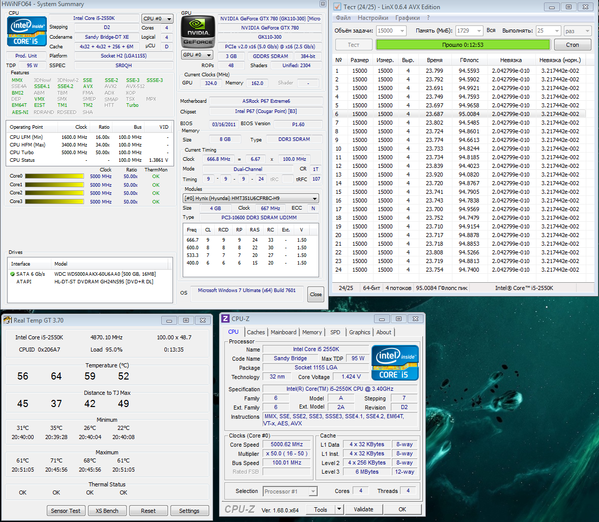 У меня под нагрузкой в стоковом состоянии без разгона в тесте аиды тоже так. Большое спасибо за помощь и информацию. Немного с системой расхлебаюсь и буду свой 2550К гнать.