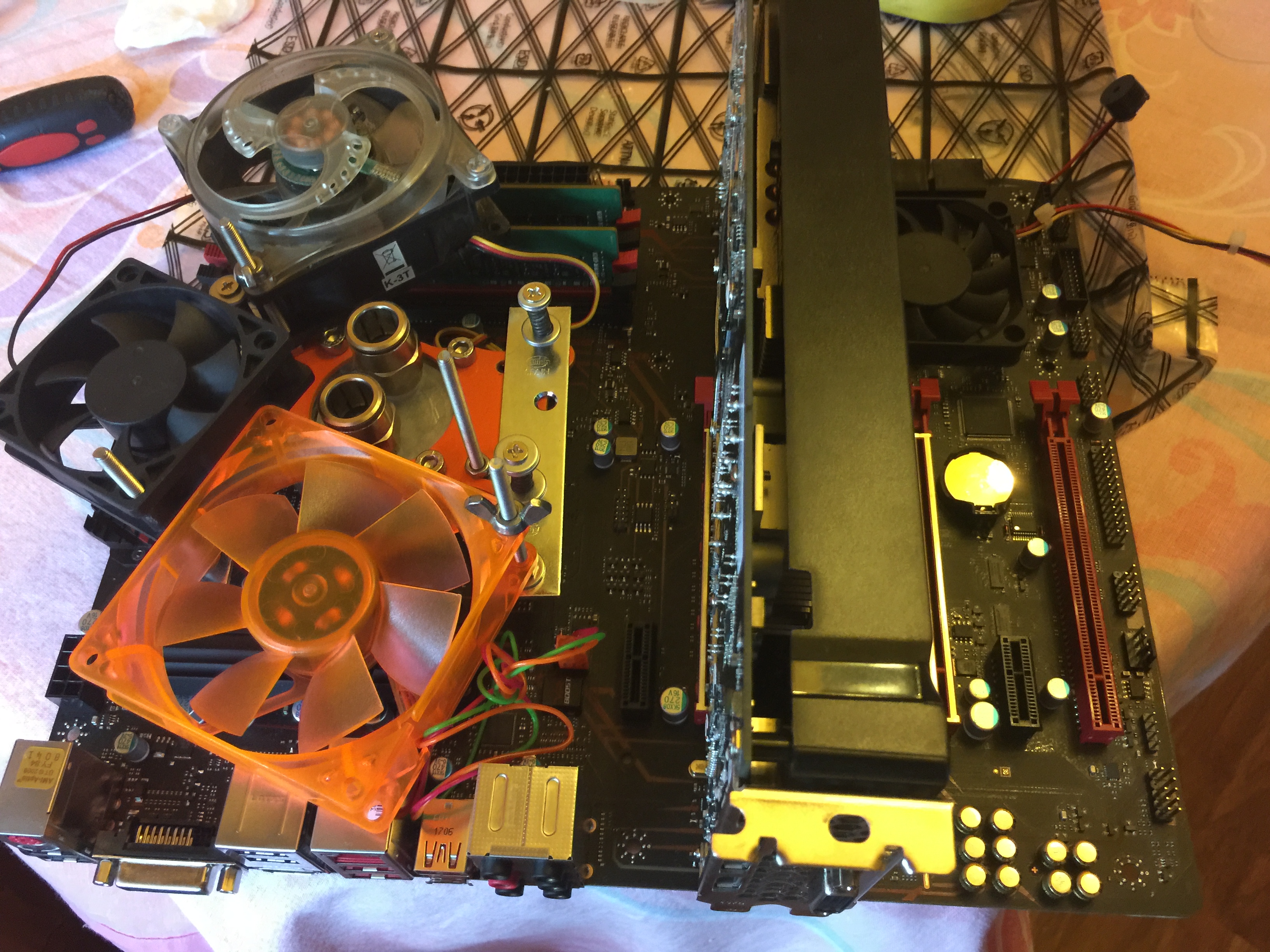 Я поставил третий вентилятор на обдув ВРМ памяти... Он без радиатора все же в бенче немного греется... Собственно как и южный мост во время нагрузки на всю систему... Вот еще фотки монтажа охлаждения от сокет АМ3... Может кому пригодится...