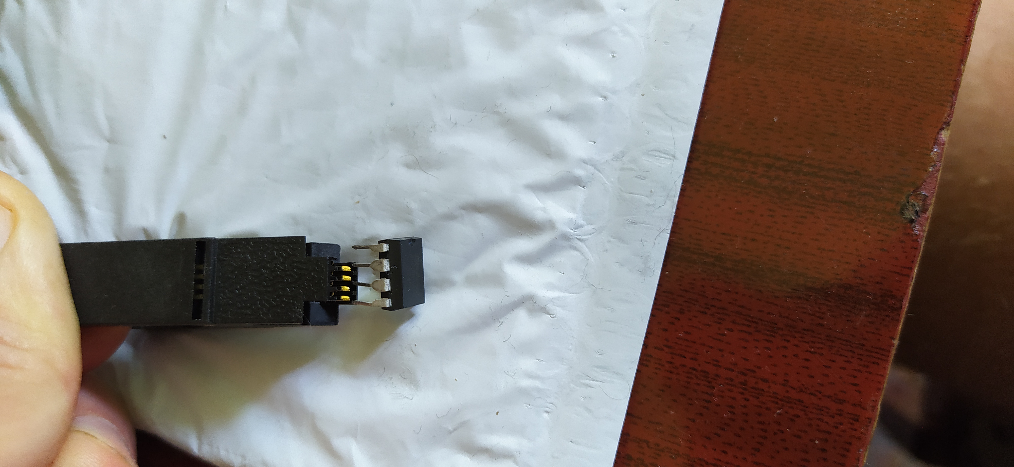 Хм. Я так уже пробовал делать. У меня не получилось с первых 2х раз и я бросил затею. Мне показалось, что там в площадке где зажимаются ножки растояние между контактами шире чем у шлейфа прищепки. Надеюсь я понятно выразился. Попробую снова.