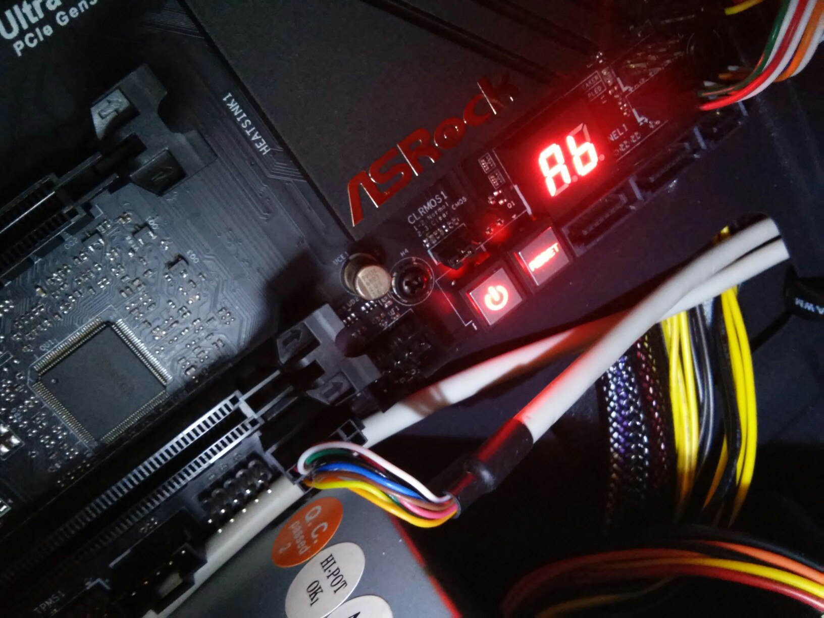 Всем доброго дня. Не давно стал обладателем платы z170 extreme4. Почти сразу заметил, что при работе в биосе он иногда зависает, ну думаю обновлю биос и все пройдет. После обновления заводского 3,3 на 7,0 все стало еще хуже зависания теперь значительно чаще в среднем после 20 секунд нахождения в биосе. Так же обратил внимание на то, что при нахождении в биосе на мат.плате высвечивается код ошибки (скрин приложил). Если я правильно понял это ошибка по сата разъему какому-то, у меня к сата подключен только HDD - его отключение ничего не дает, ошибка продолжает гореть. На работе в Виндовс все выше перечисленное ни как не сказывается. Подскажите с чем могут быть связаны данные проблемы? Может они взаимосвязаны? Система: z170 extreme4 i5 6400 (без разгона) 16gb gtx 1060 hdd Клавиатура и мышь USB.