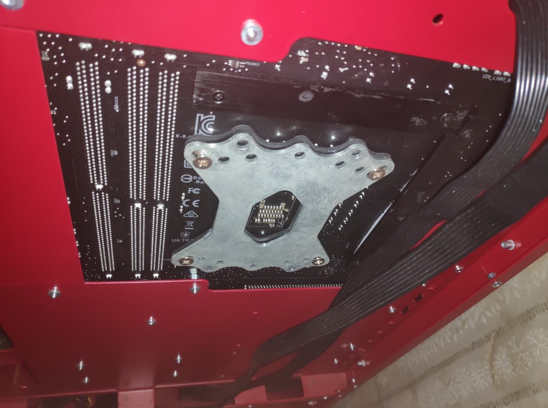 Сижу на орехе 11 . Долгое время думал, почему проц такой горячий, и прижим кривой. Поменял ватер, не помогло. В итоге глянув на плату , увидел что мать повело после стакана. В итоге пришлось сделать так, и теперь все годно.