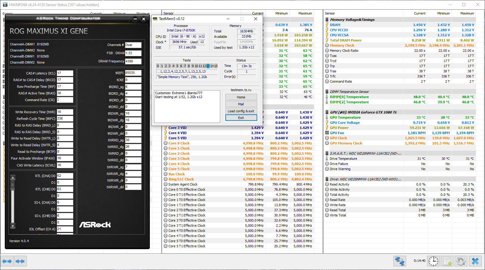 Обновил биос. Пока радует. Наконец-то память удалось отстабилить на 4400с17, напряжения IO/SA пока не снижал, выставлены с запасом. Ранее даже на 1.5В и более расслабленных таймингах были ошибки пачками.