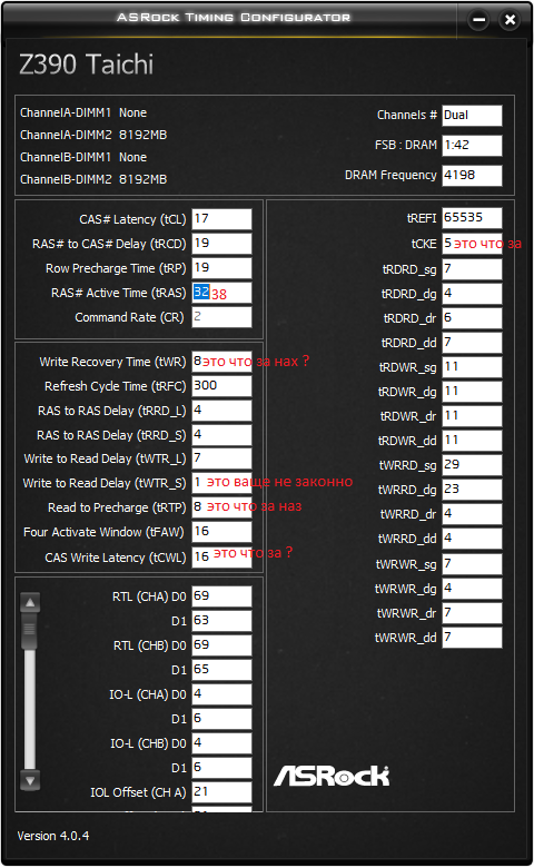 Подскажите asrock taichi ultimae, память patriot vaper 4400, не заводится выше 4000 ни с xmp ни в ручную, процессор i7 9700k, в стоке, подскажите как завястя память 4000+?) тайминги снижаются все работает, но частоту поднять не удается