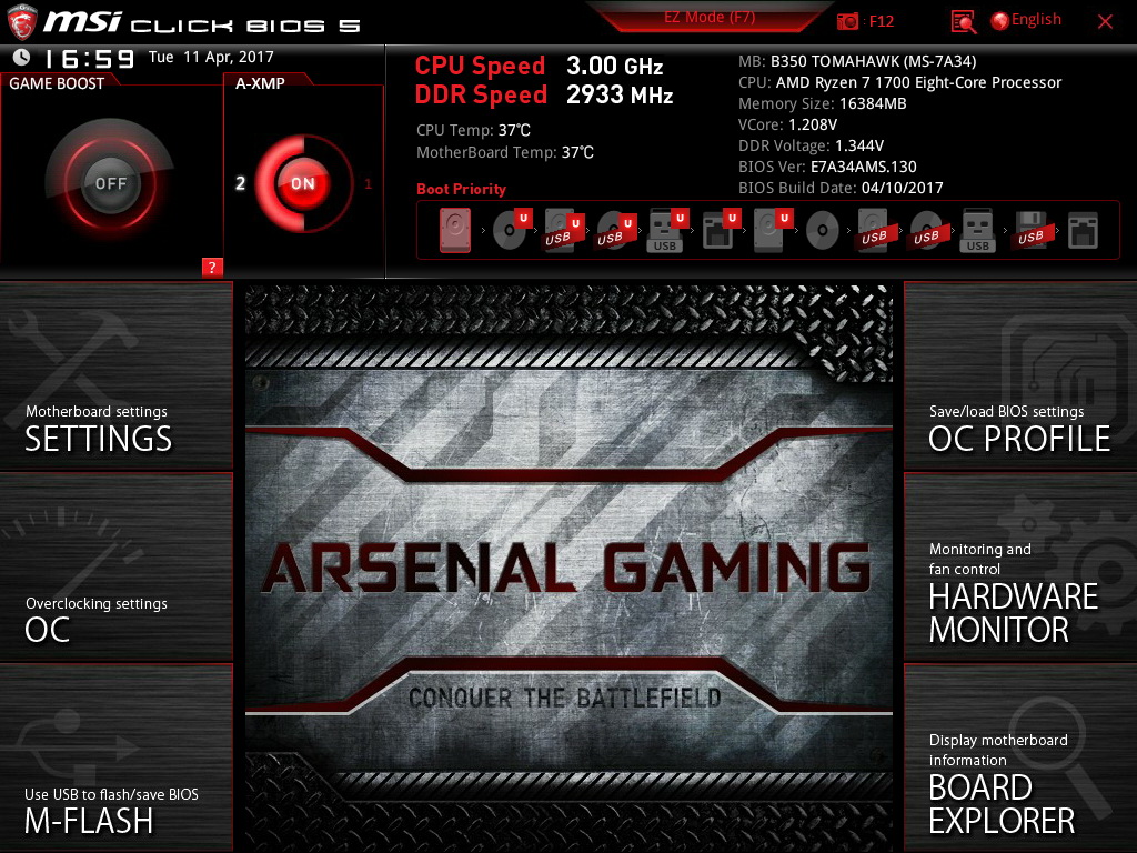 По моим ощущениям в новом bios 1.3 на msi b350 tomahawk я некоторые улучшения увидел. 1. POST стал быстрее 21 сек. вместо 37 сек. (пусть допиливают до стандартов ) 2. Появилась функция в A-XMP в виде полумесяца значение 1 и значение 2, в значении 2 моя память CORSAIR Vengeance LPX CMK16GX4M2B3000C15 завелась на частоте 2933 без проблем. Брал именно эту плату исключительно из-за наличия 2-х PCI слотов и слота м2 под SSD. Плата работает около 2-х недель, особых проблем мною не замечено. Едет еще плата msi b350 tomahawk Arctik, будем поглядеть....