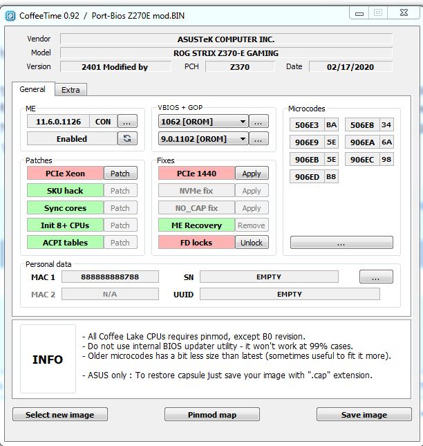 Для плат на базе чипсетов Z370, B365 и H310C можно добавить поддержку процессоров Skylake и Kaby Lake. Для этого достаточно понизить версию МЕ и добавить необходимые микрокоды.