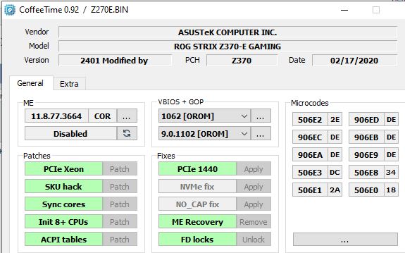 Ну и на всякий случай сориентируйте что из фиксов нужно произвести для STRIX-Z270E-GAMING + QNCT как я понимаю обязательно это ME Corp +Disable, апнуть OROM + микрокоды, применить фикс PCIe 1440... Всё? или еще применить фикс PCIe Xenon?