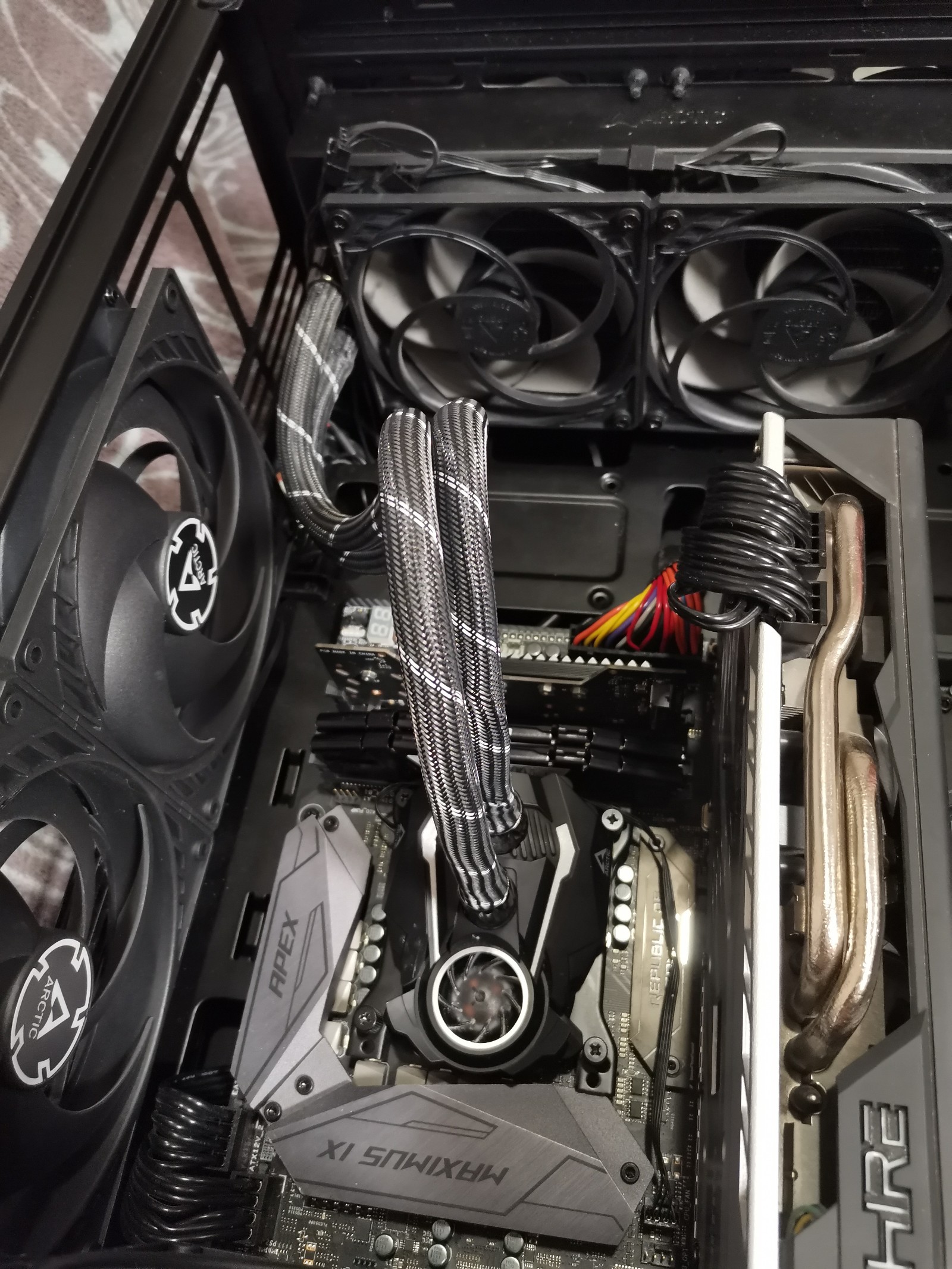 По охладу была у меня проблема с прилеганием водоблока к кристалл, решил проблему путем ослабления натяжения шлангов (создавали натяжение и водоблок постепенно отходил от кристалла в месте расположения ядер 1,3,5, тобишь сверху кристалла), и изменением расположения водоблока. У моей водянки шланги заходят не сбоку, как у других водянок, а сверху.