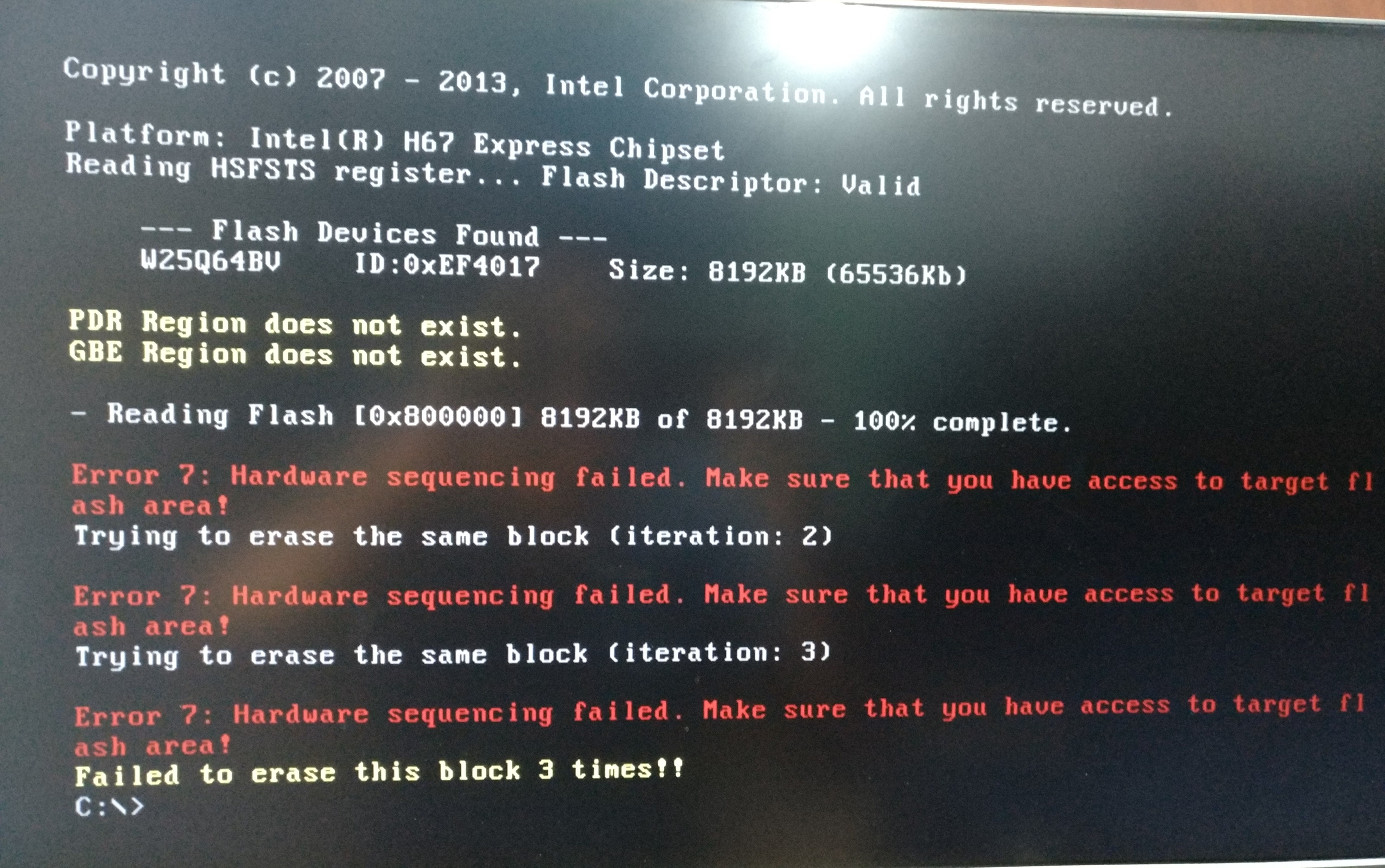 Это один и тот же дамп, достаточно сравнить контрольные суммы. 32s1.bin взят отсюда https://vk.com/topic-114738215_38626580 #77 Афудос пишет, потому что он пишет только bios-регион, а fpt командой fpt -f bios.bin пишет фулфлэш. Задайте команду fpt -bios -f bios.bin и будет тоже прошиваться только биос регион. Ну да ладно, это всё лирика. В архиве биос с "чистым" ME-регионом, в дескрипторе регионы открыты на чтение/запись, размер bios-региона исправлен на 6mb (сам регион взят из 3_2s1_tuning.rom, в котором регулируются тайминги.) Свежий fpt прилагается, пробуйте шить им командой fpt -f 32s1.bin Если прошьётся, ввести команду fpt -greset, это цитирую: "Initiate a global reset. A global reset is sufficient to allow the ME to use the update Fixed offset variables." (Инициируйте глобальный сброс. Глобального сброса достаточно, чтобы ME мог использовать обновление Исправлены переменные смещения.)