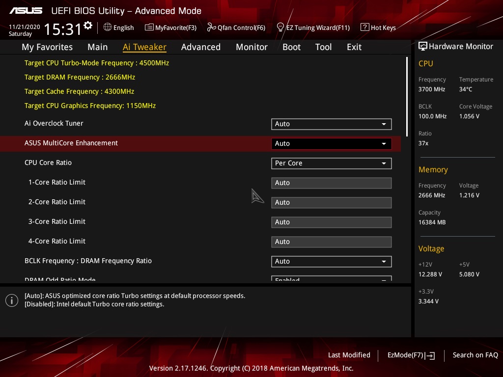 Taburetca В биосах от ASUS жестко зашито максимальное количество ядер для настройки частоты, т.е. 4 штуки. Это особенности GUI, т.к.производители в меру своей испорченности пихают "защиту" куда только можно. А вот у Gigabyte, например, отображаются все ядра. Вам нужно сделать следующее: - Убедиться, что в мод биосе активирован патч "Sync Cores". - Выставить в биосе настройку "CPU Core Ratio = Sync All Cores". - Отключить MCE. При таком раскладе все ядра будут работать с одинаковым множителем, установленным для 1 ядра.