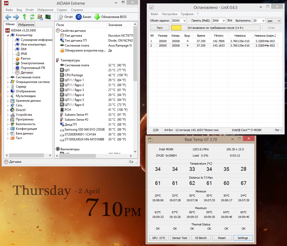 Добавлено спустя 17 минут 10 секунд: и какой лучше программе доверять по поводу температур? aida64 или realtemp, так как они разные совершенно температуры показывают...