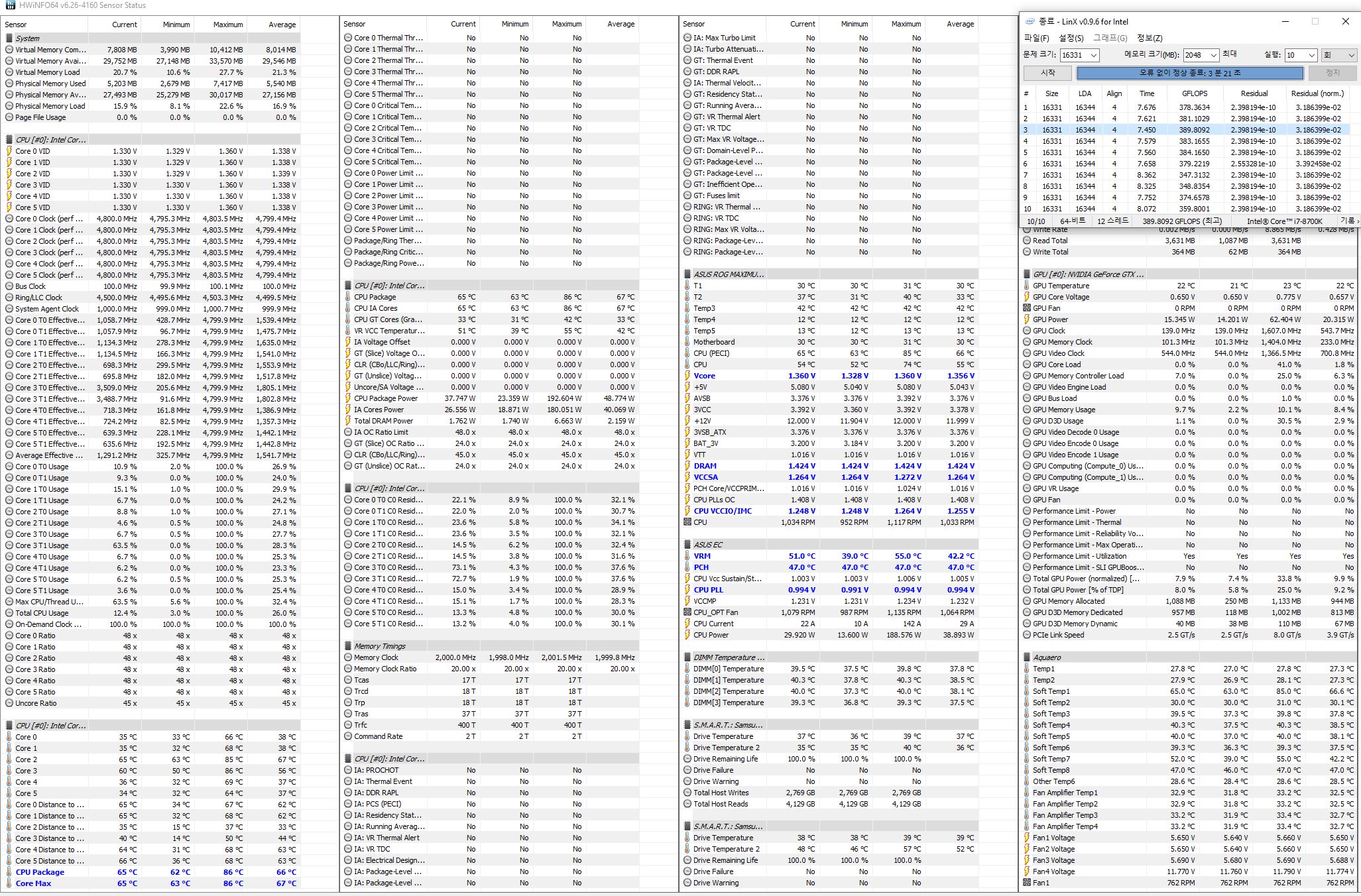 В общем поработал денек мой комп нормально. А потом с колдбута не включался. Откатил биос на 2203. Настроил. Память без проца разогнал, проверил - все ок. Поставил проц на 4.8 при 1,36v LLC5 и пипец... То ли проц умирает, то ли делидинг/термопаста все. Термопасту и жижу в контуре менял 2 месяца назад... На видеокарте та же термопаста Gelid GC-Extreme - температуры нормальные. Устал ковырять этого инвалида (