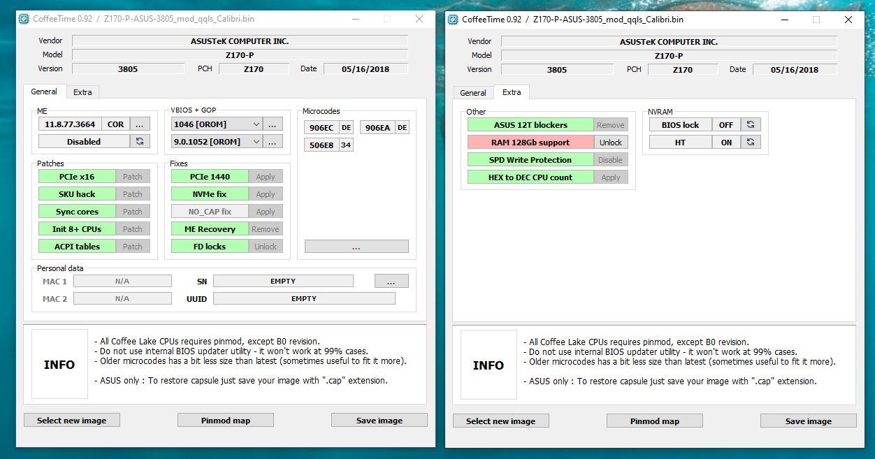 Вот думаю что дальше? Делать мод Биос из Биос-а для матери Z370-P? Как его правильно готовить? Поделитесь ссылочкой пожалуйста. Или просто нужно взять БИОС от Asus Z370-P прошить в кофетайм 0.92 под нужный проц, вшить на флешку и запускать на Asus Z170-P?
