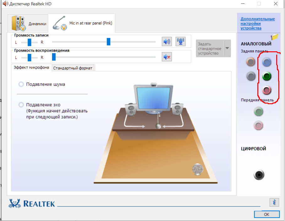 Пробовал через диспетчер Realtek не работает так-же пробовал через реестр подменить выходной разъём (из микрофона сделать канал на программном уровне ) не помогло