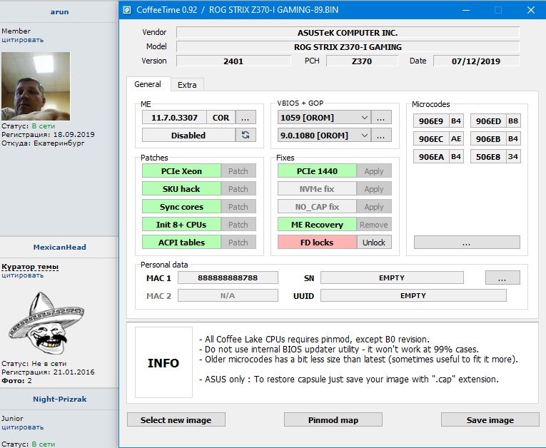 CoffeeTime 0.92 [ Я.Диск ][ Mega ] Автор: svarmod Эта версия не содержит автомодификации, все изменения в биосе проводятся "вручную"; предоставляется без каких-либо подсказок, с GUI, новыми фишками и прочими удобствами. Больше информации о новой версии на [ Страница 407 ]