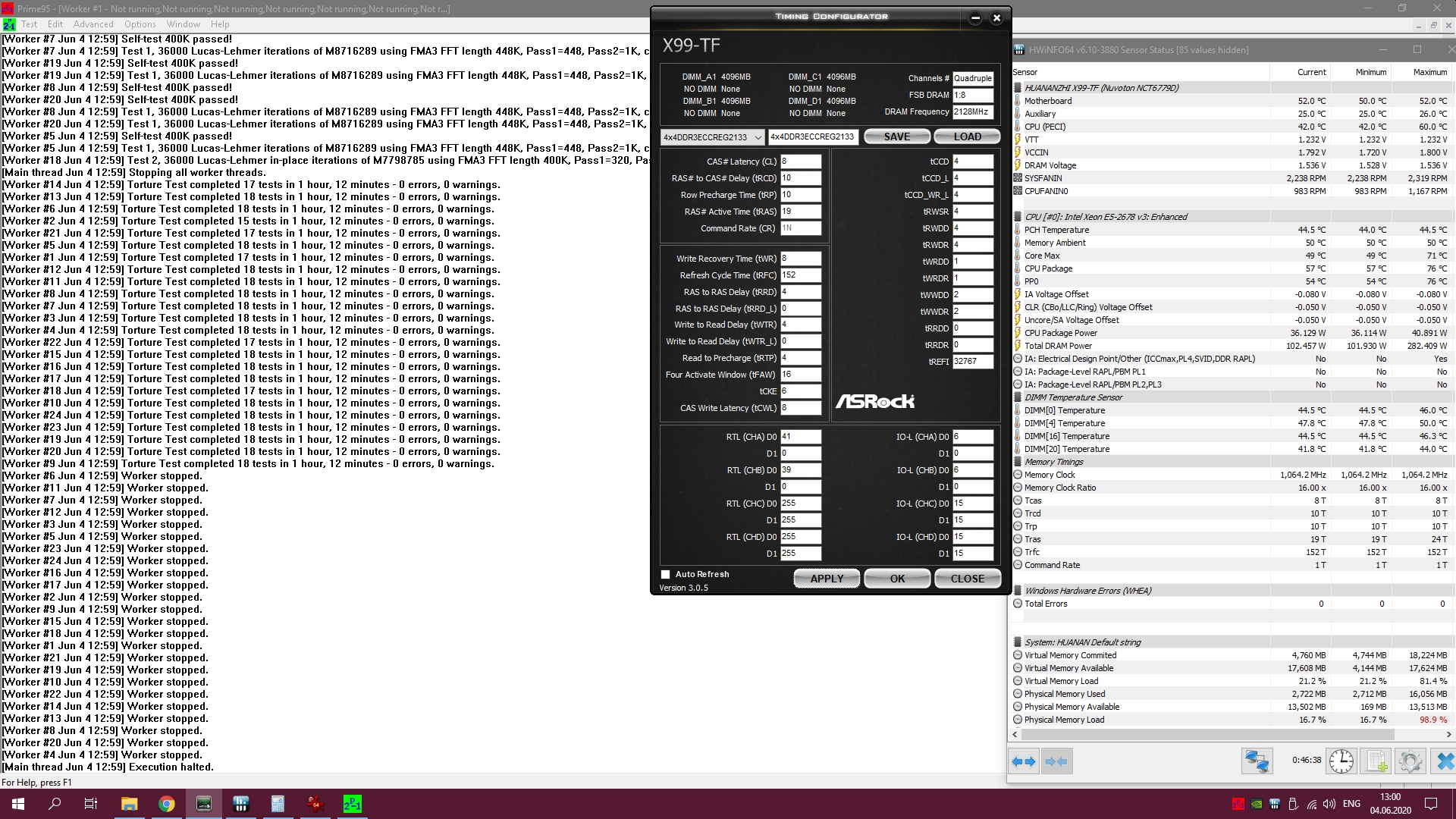 Для разгона множитилем как правило достаточно настроек стокового биоса, но в любом случае не прошивайте биосы предназначеные для анлока турбобуста процессров с заблокированым множителем, типа"с повышенным повер-лимитом и открытыми дополнительными настройками QPI". Для плат Huananzhi и других, использующих схожий биос, нужные настройки находятся в меню IntelRCSetup > Overclocking Feature > Processor и IntelRCSetup > Overclocking Feature > CLR\Ring. Основные параметры: Core Max OC Ratio — множитель ядер. Для Xeon E5 1650 v3 можно сразу установить 41-42. Core Voltage Mode — можно выбрать динамически (Adaptive) повышать напряжение или сделать статическим Core Voltage Override — выставляем напряжение на процессор в милливольтах, к примеру 1250, это будет 1.25 вольта (начать можно как раз с этого значения). Выше 1.30 поднимать с осторожностью! CLR Max OC Ratio — множитель контроллера памяти. По умолчанию равен 30, можно плавно повышать до 33-35 и тестировать производительность и стабильность. Core Voltage Mode — напряжение контроллера памяти. Аналогично Core Voltage Mode, но не выше 1250. Процессоры Haswell очень чувствительны к напряжению контроллера памяти, более-менее оптимальным считается 1.25 вольта, поднимать выше стоит с особой осторожностью.