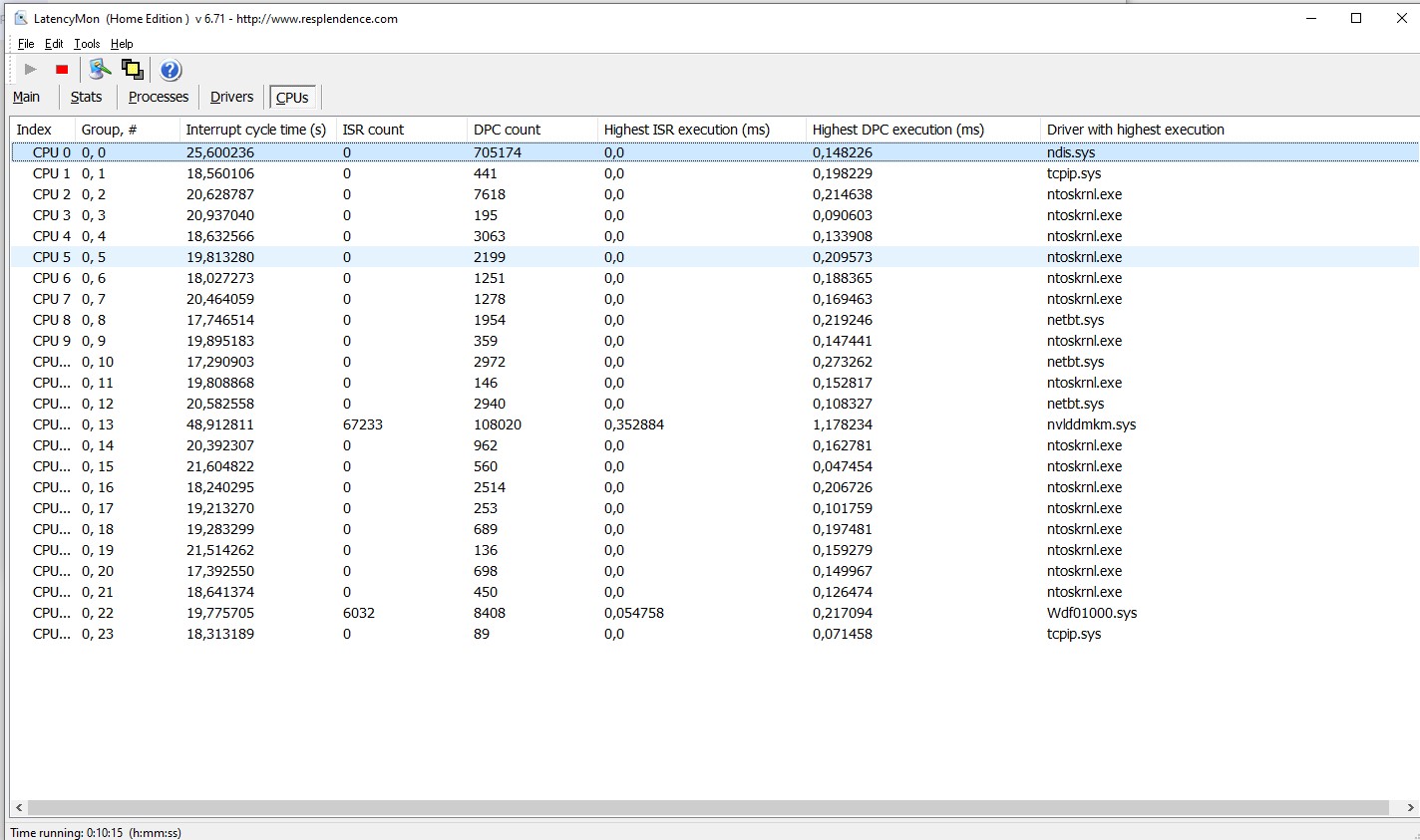 Вот что мне показал LatencyMode