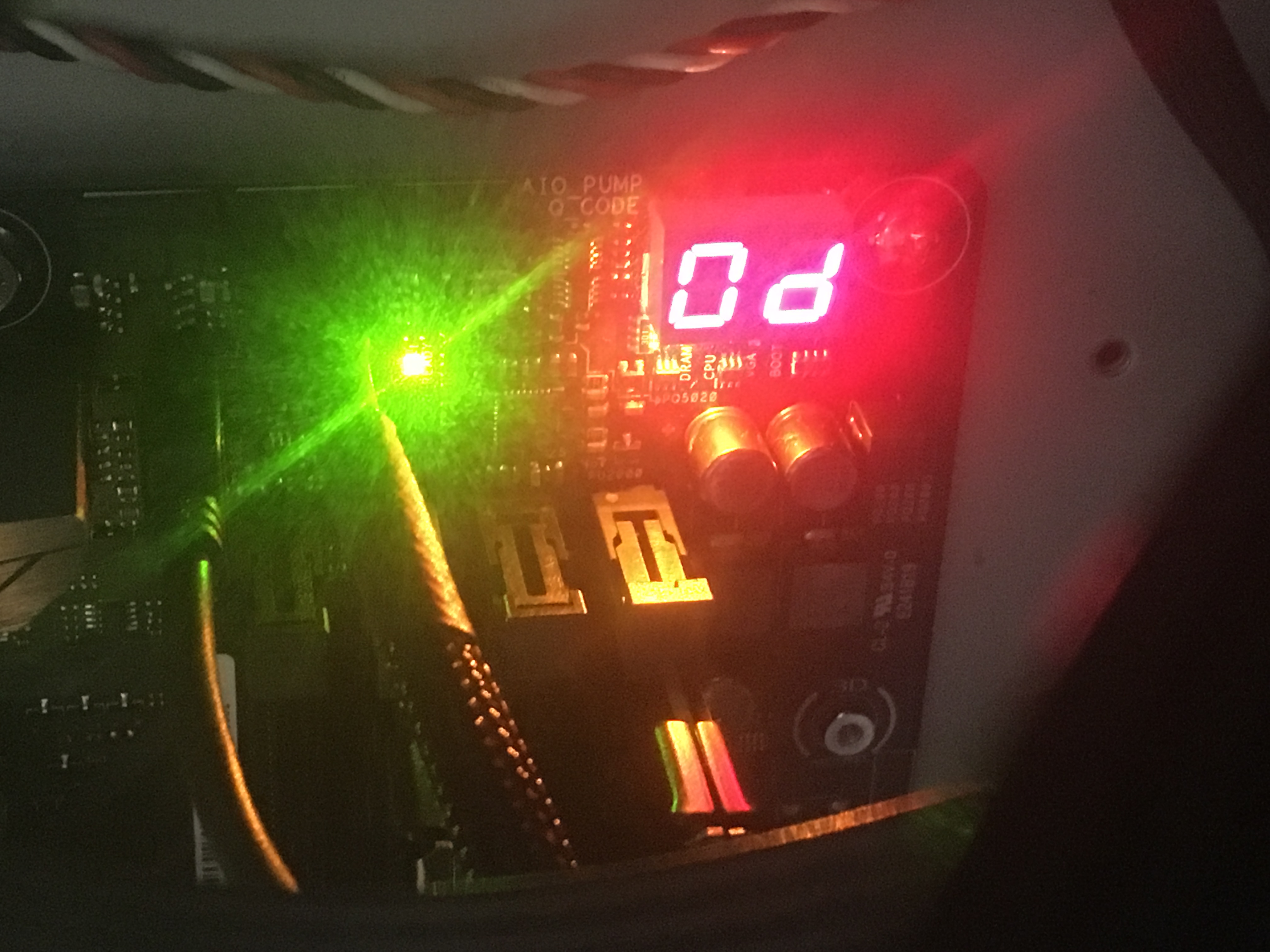 Вот. Похоже дело было во второй видеокарте через райзер. В итоге заставил запуститься сбросом биоса, но постоянно крашится драйвер. Полагаю дело в матери, т.к. с этим же райзером на старой Asus P5KE все прекрасно работало