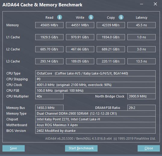 P.S. А можно в АИДЕ прогнать тест памяти на 2800 с таймингами 12-12-12-28-1?