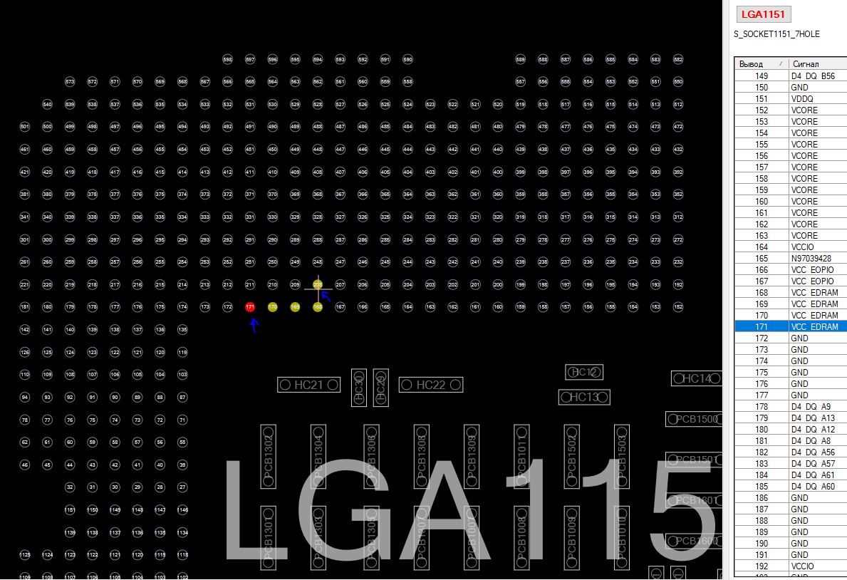 Желтым цветом обозначены контакты, которые также имеют различное назначение в сокетах 1151v1 и 1151v2, но пока не найдено плат, для которых нужна их обязательная изоляция.